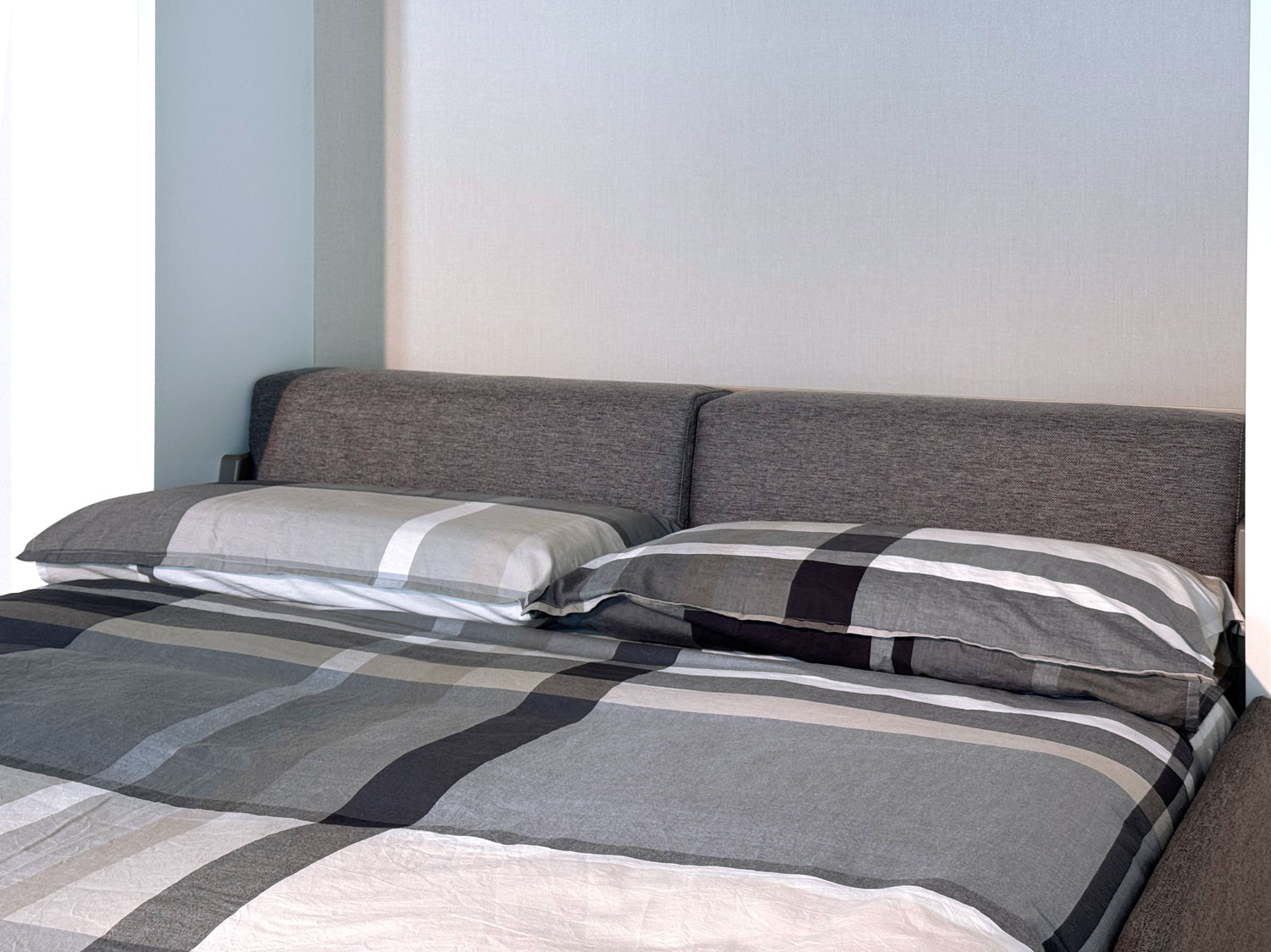 Material Das französische vertikale Klappbett 140 Versia Sofà, mit integriertem Sofa, erfindet das Konzept des Raums neu. Eleganz, Funktionalität und Design verschmelzen im Versia Sofà, dem französischen vertikalen Klappbett 140, das den Wohnbereich in wenigen ein