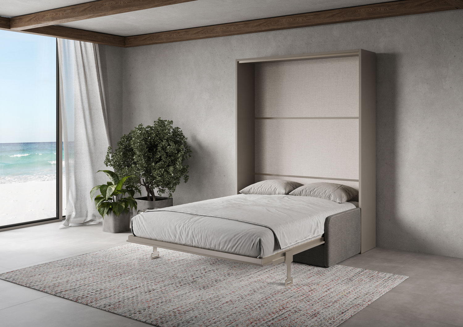 | Material | Das vertikale Doppelbett Versia Sofà mit integriertem Sofa erfindet das Konzept des Raums neu. Eleganz, Funktionalität und Design verschmelzen im Versia Sofà, dem vertikalen Doppelbett, das den Wohnbereich in wenigen einfachen Schritten in einen Schlafber |