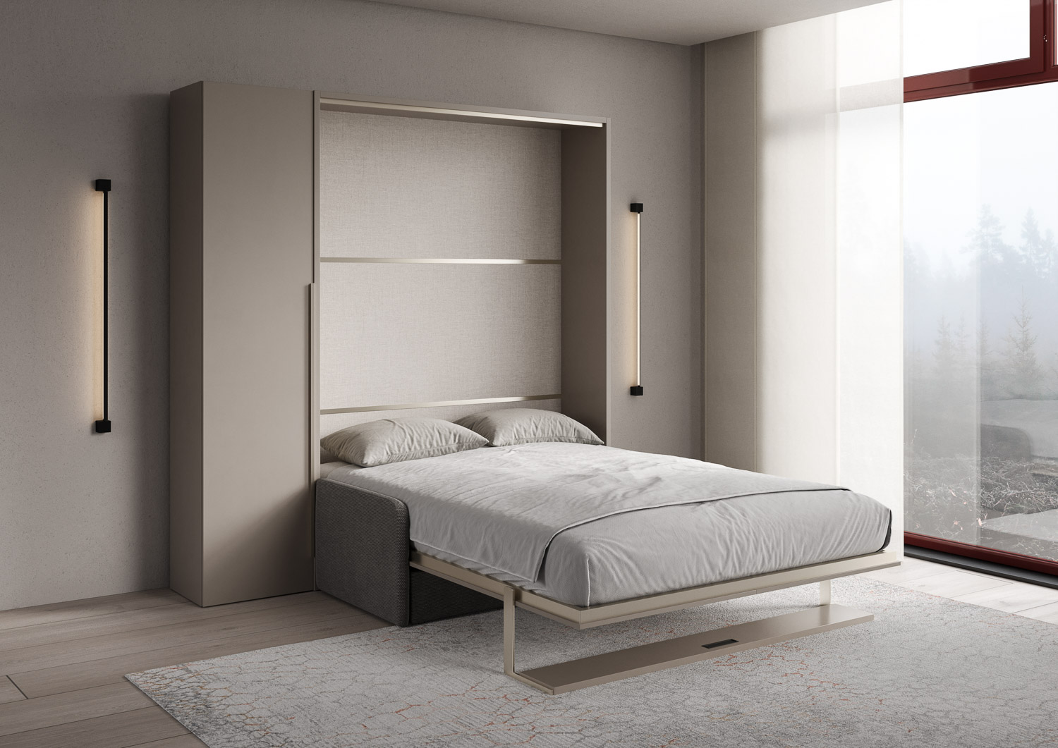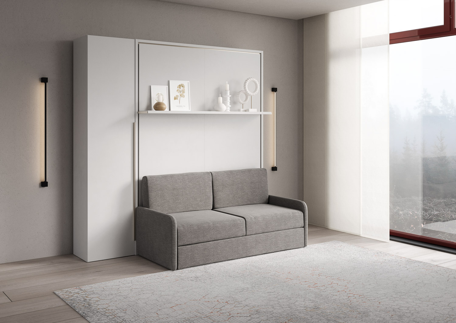 | Material | Das vertikale Doppelbett Versia Sofà mit integriertem Sofa erfindet das Konzept des Raums neu. Eleganz, Funktionalität und Design verschmelzen im Versia Sofà, dem vertikalen Doppelbett, das den Wohnbereich in wenigen einfachen Schritten in einen Schlafber |