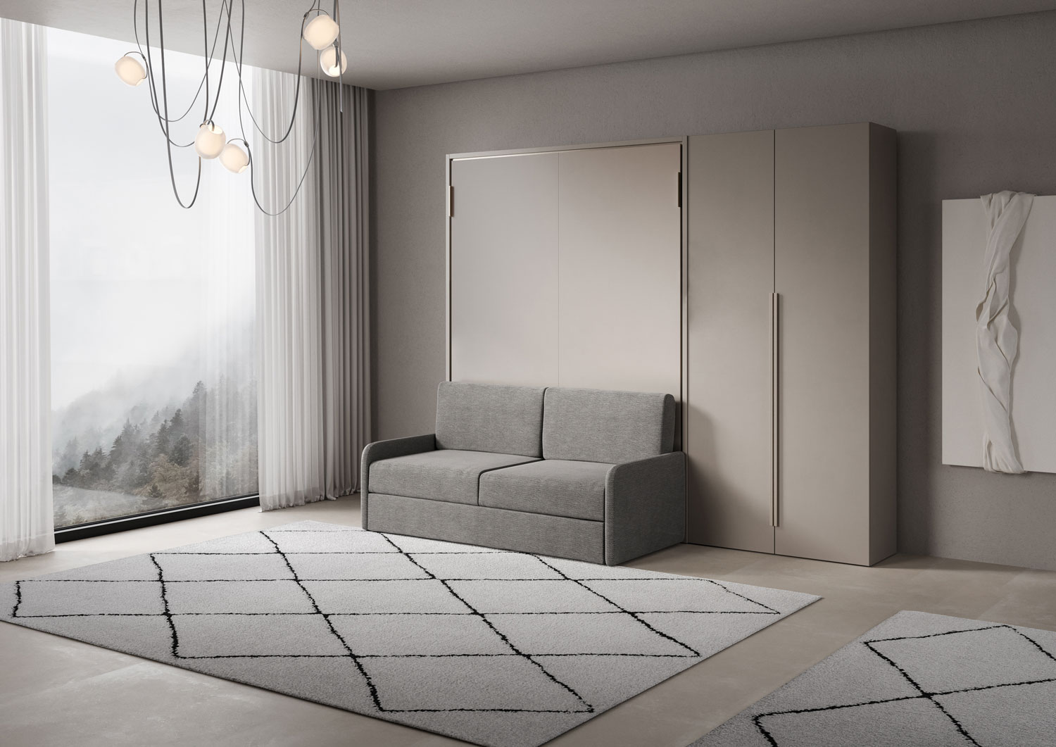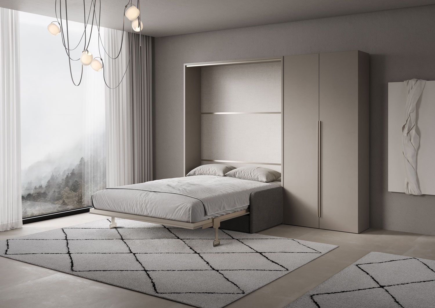 | Material | Das vertikale Doppelbett Versia Sofà mit integriertem Sofa erfindet das Konzept des Raums neu. Eleganz, Funktionalität und Design verschmelzen im Versia Sofà, dem vertikalen Doppelbett, das den Wohnbereich in wenigen einfachen Schritten in einen Schlafber |