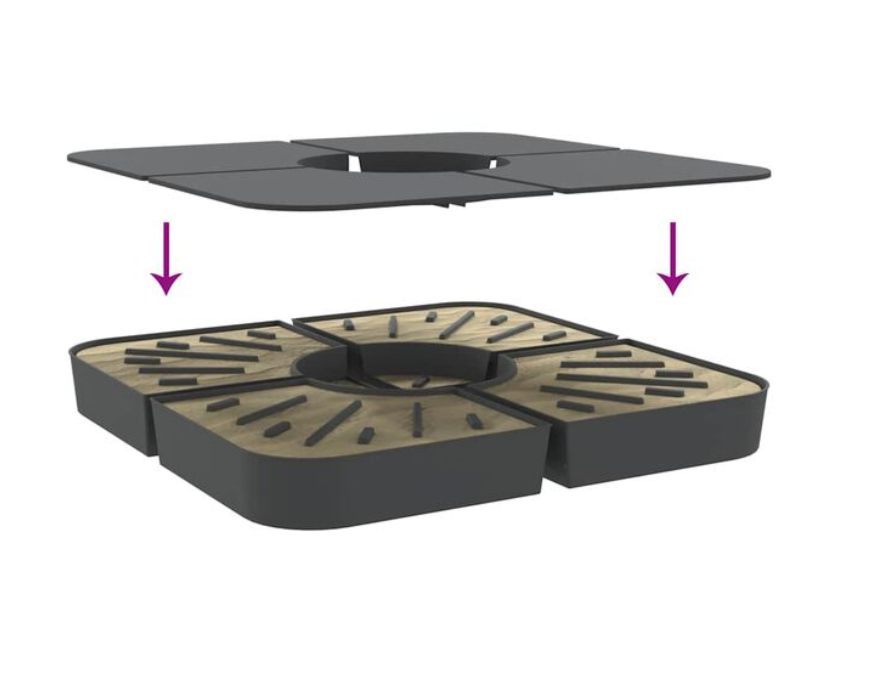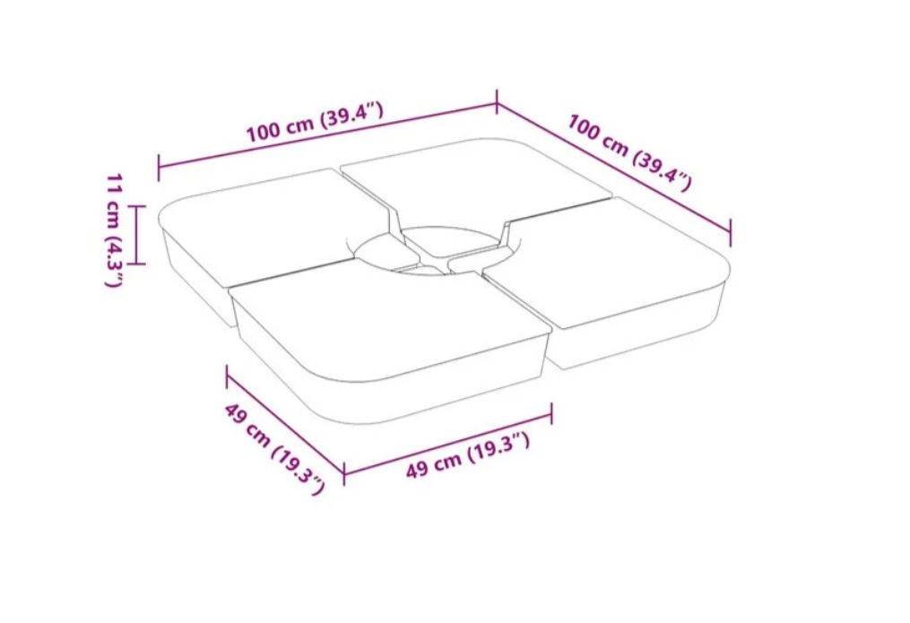 - Abnehmbar und tragbar: Dank des 4-Platten-Designs lässt sich dieses Schirmständer-Set bei Nichtgebrauch abnehmen und zum bequemen Transport platzsparend stapeln.