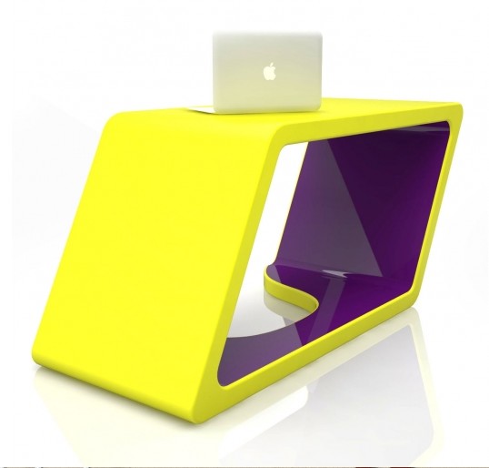 MATT LACQUERED-Außenfinish, GLOSSY LACQUERED-Innenfinish in Schwarz / Lila, Gelb / Violett und Weiß / Violett.