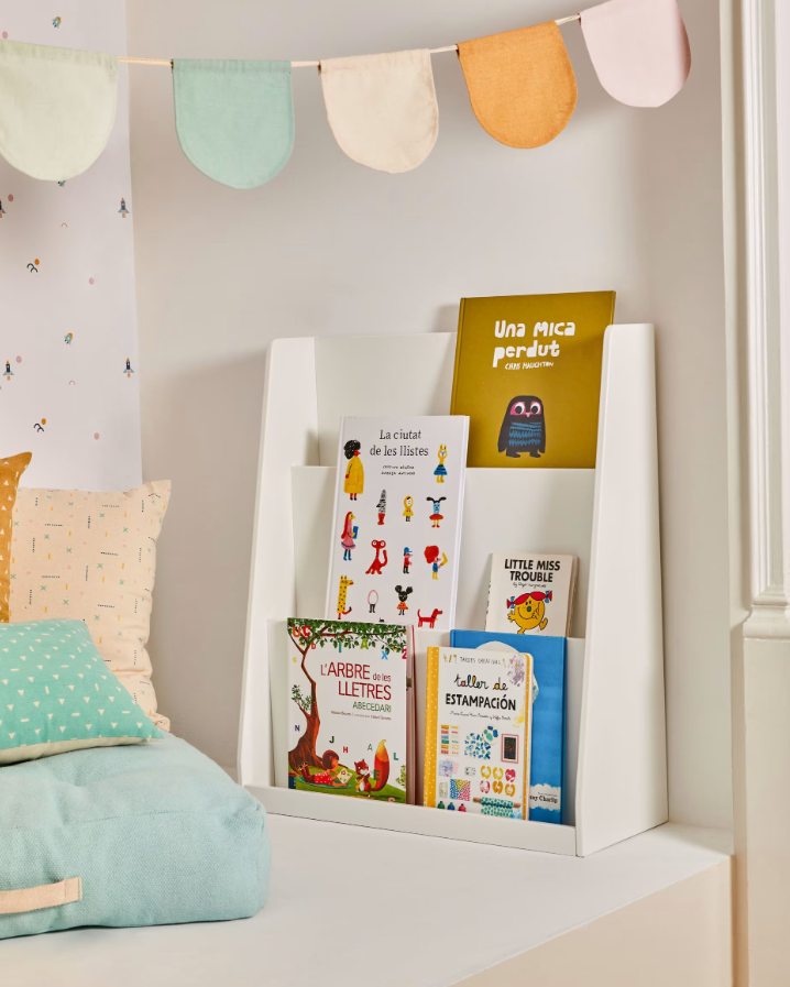 Ein dekoratives und praktisches Accessoire für das Schlafzimmer Ihrer Kleinen. Dieses Bücherregal ist das perfekte Stück, um zu lernen, wie Sie Ihr Zimmer organisieren und Ihre Lieblingsbücher immer griffbereit haben.