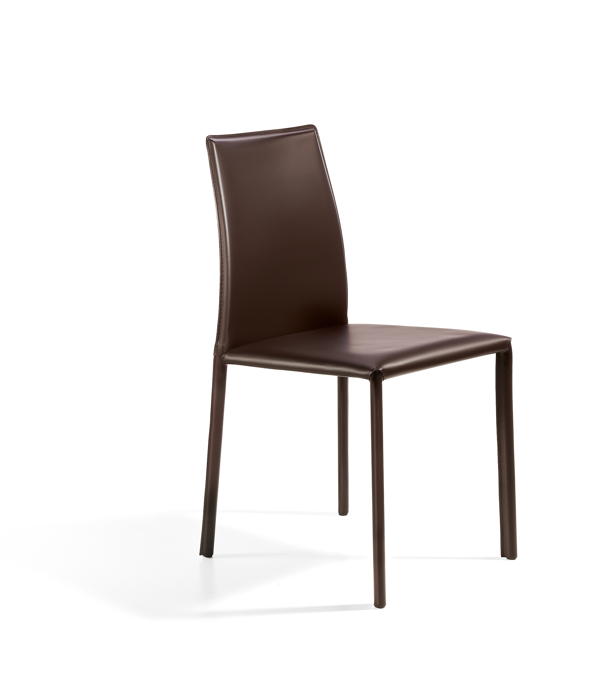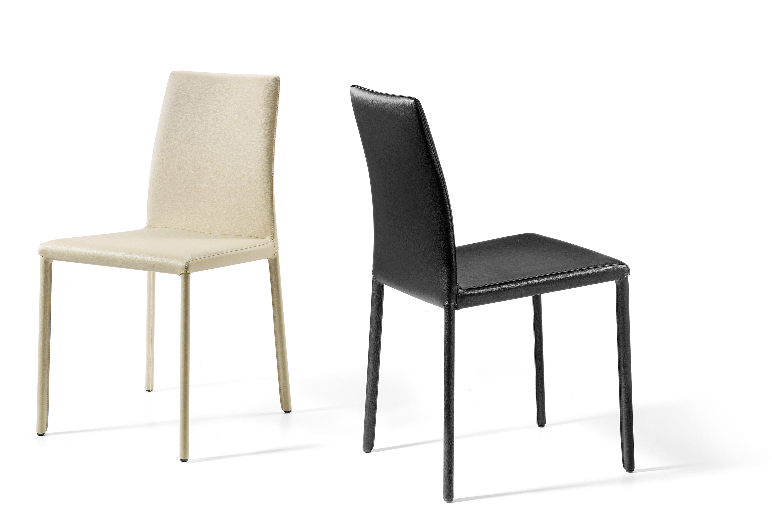 Stuhl mit lackierter Stahlrohrstruktur mit niedriger oder hoher Rückenlehne.