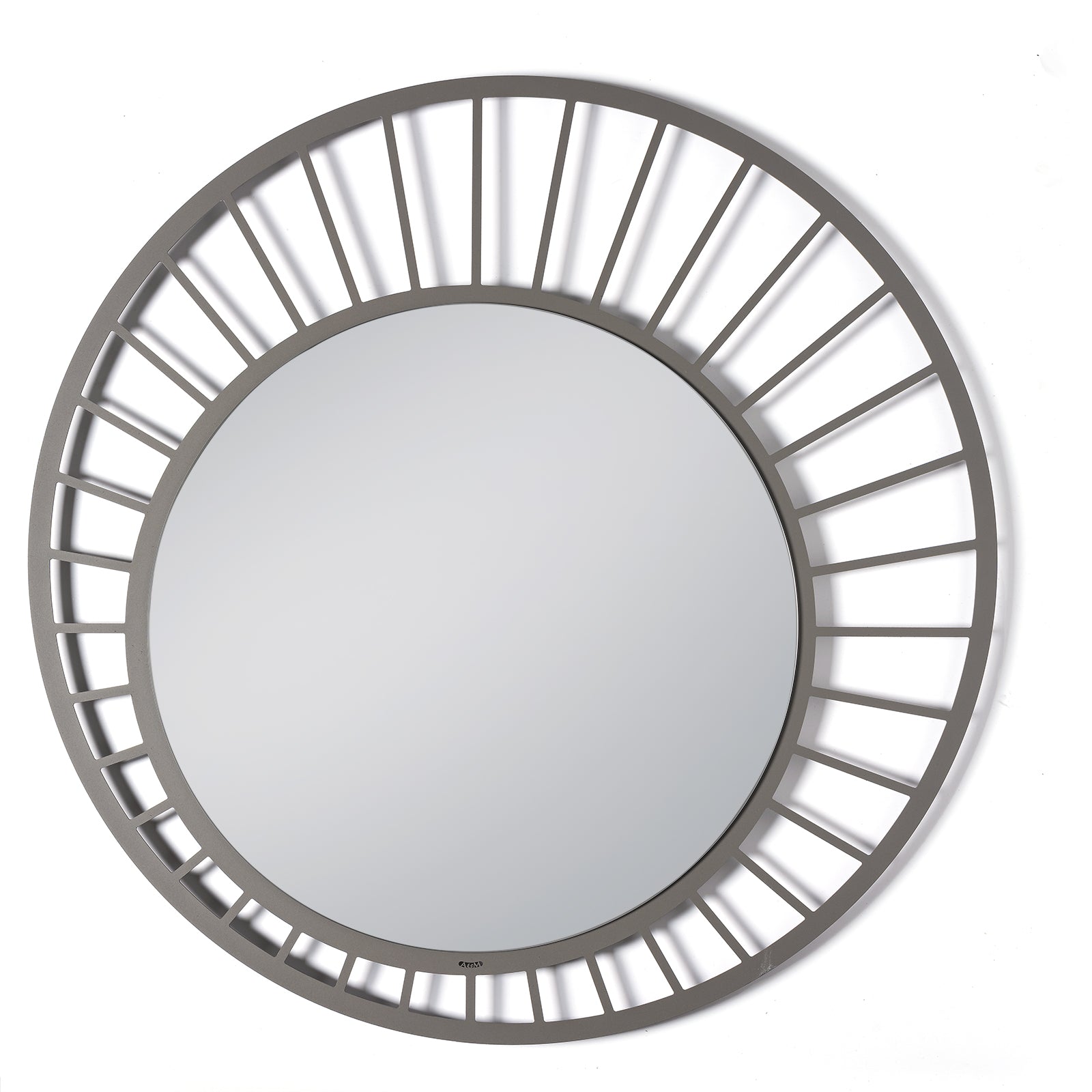 Das Design zeichnet sich durch einen dezentrierten runden Spiegel innerhalb einer größeren kreisförmigen Struktur aus, die durch dünne Linien verbunden ist, die sich wie die Speichen eines Fahrradrads verzweigen. Dieses visuelle Zusammenspiel schafft eine interessante Balance zwischen Voll- und Hohlräumen und verleiht der Komposition Leichtigkeit und Bewegung. Das Ergebnis ist ein Objekt mit Persönlichkeit, ohne aufdringlich zu wirken – ideal für moderne und zeitgenössische Räume.