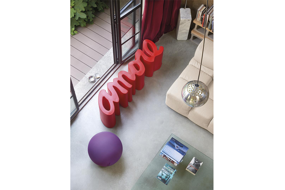 Die Bank Amore SD AMO040 von Slide ist ein originelles, ironisches und charaktervolles Möbelstück. Ihr unverwechselbares Design in Form des Wortes „AMORE“ vereint Kunst und Funktionalität und ist ein perfektes Dekorationselement für Innen- und Außenbereiche.