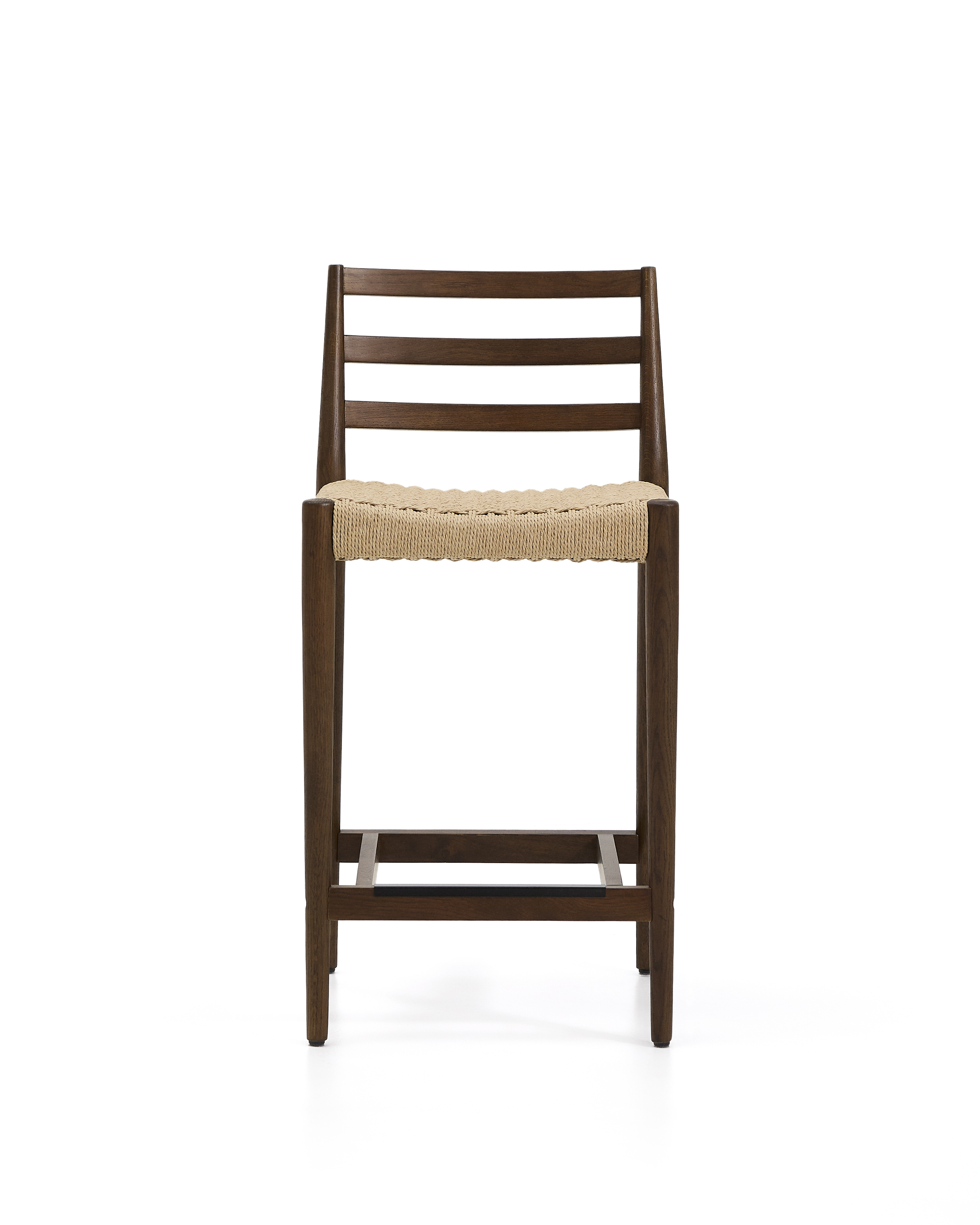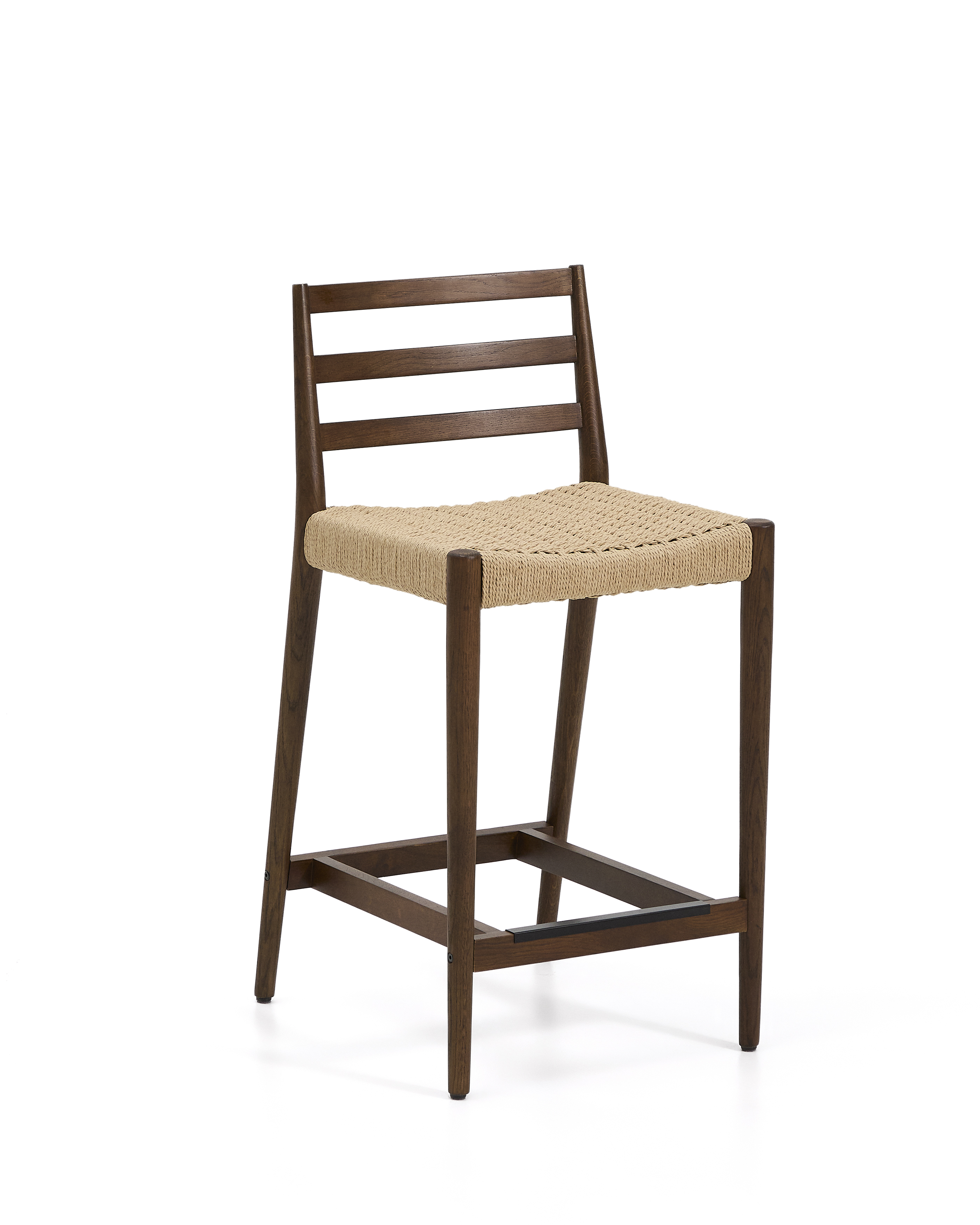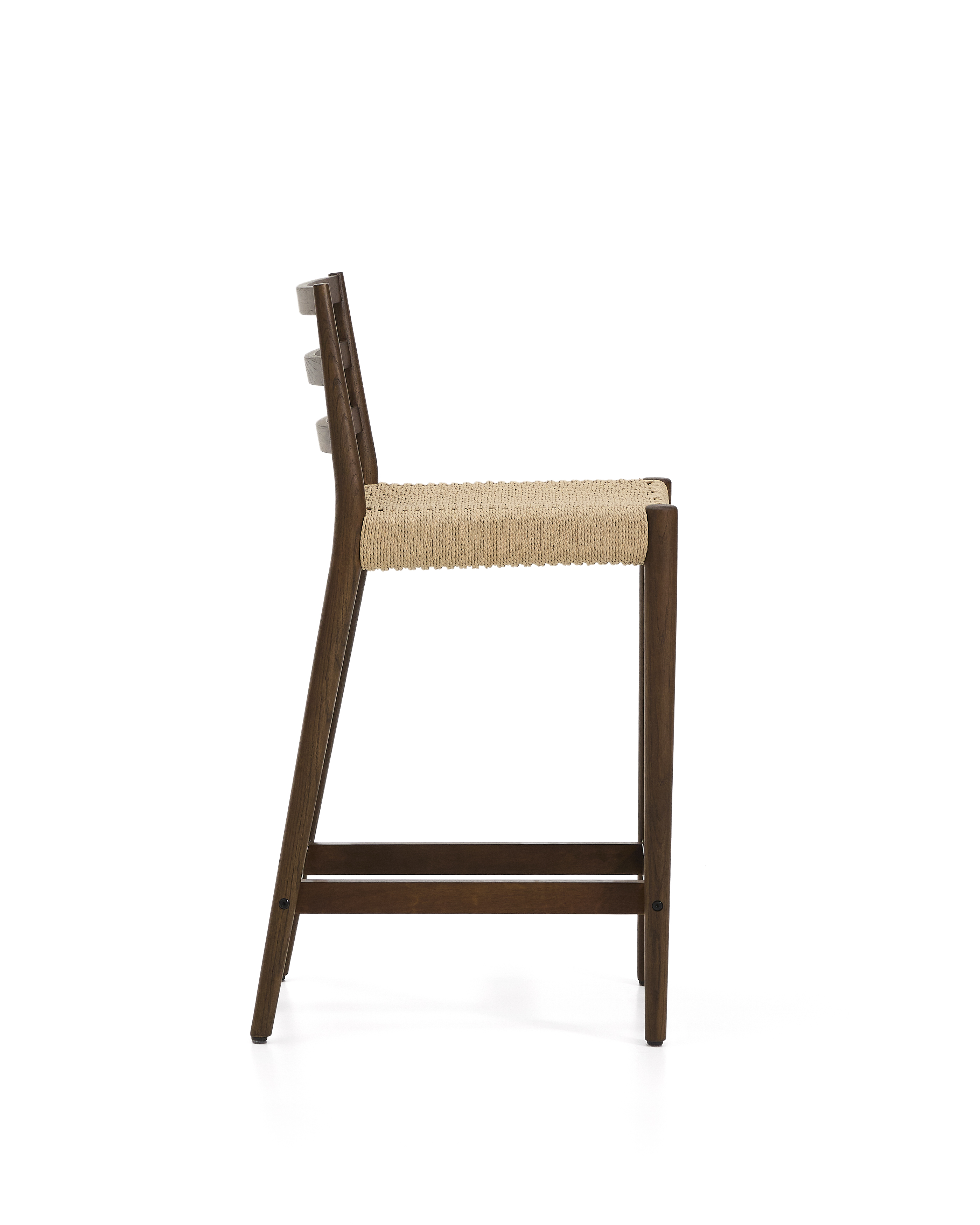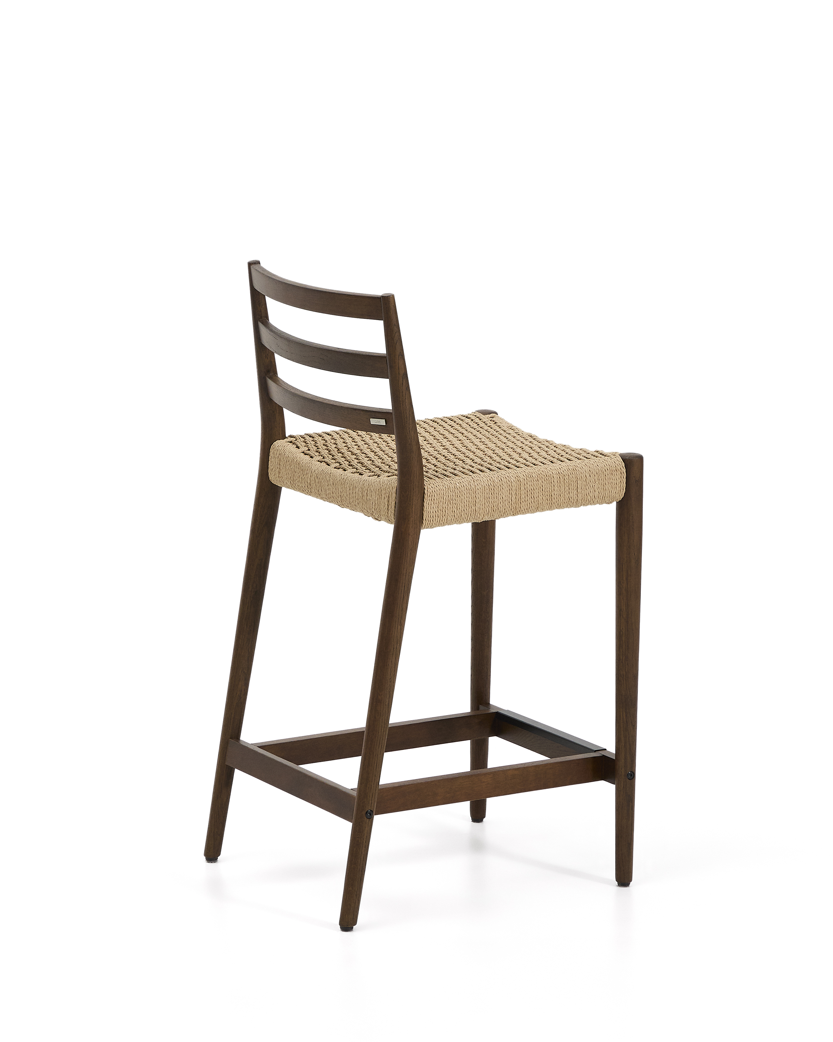 Analy Hocker mit Rückenlehne aus massiver Eiche mit Walnuss-Finish und Seilsitz, 65 cm, FSC 100%