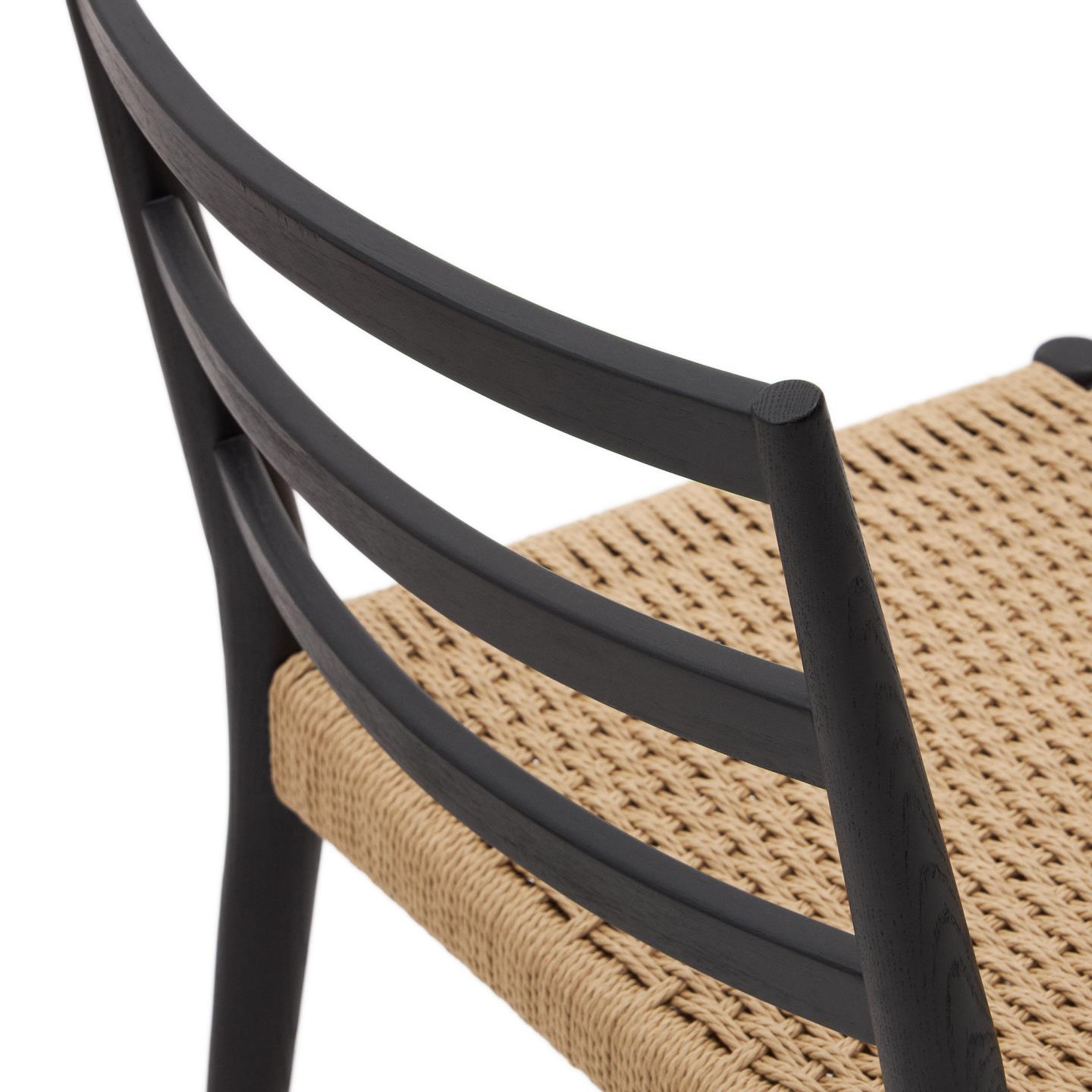 Analy Stuhl aus massivem Eichenholz mit schwarzem Finish und Sitzfläche aus FSC 100% Seil
