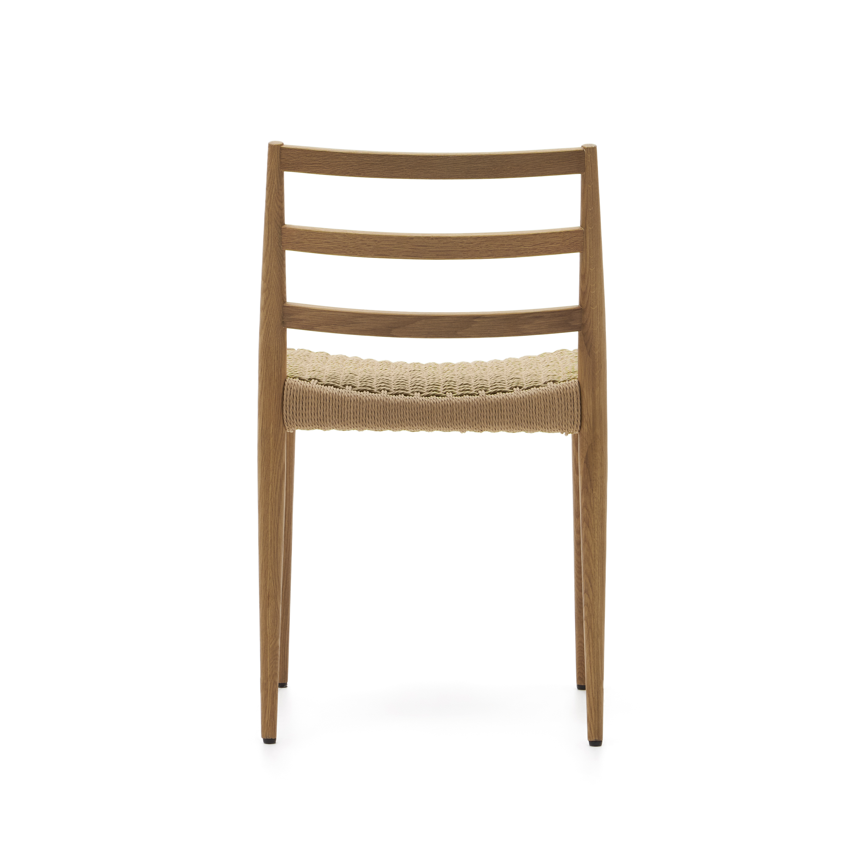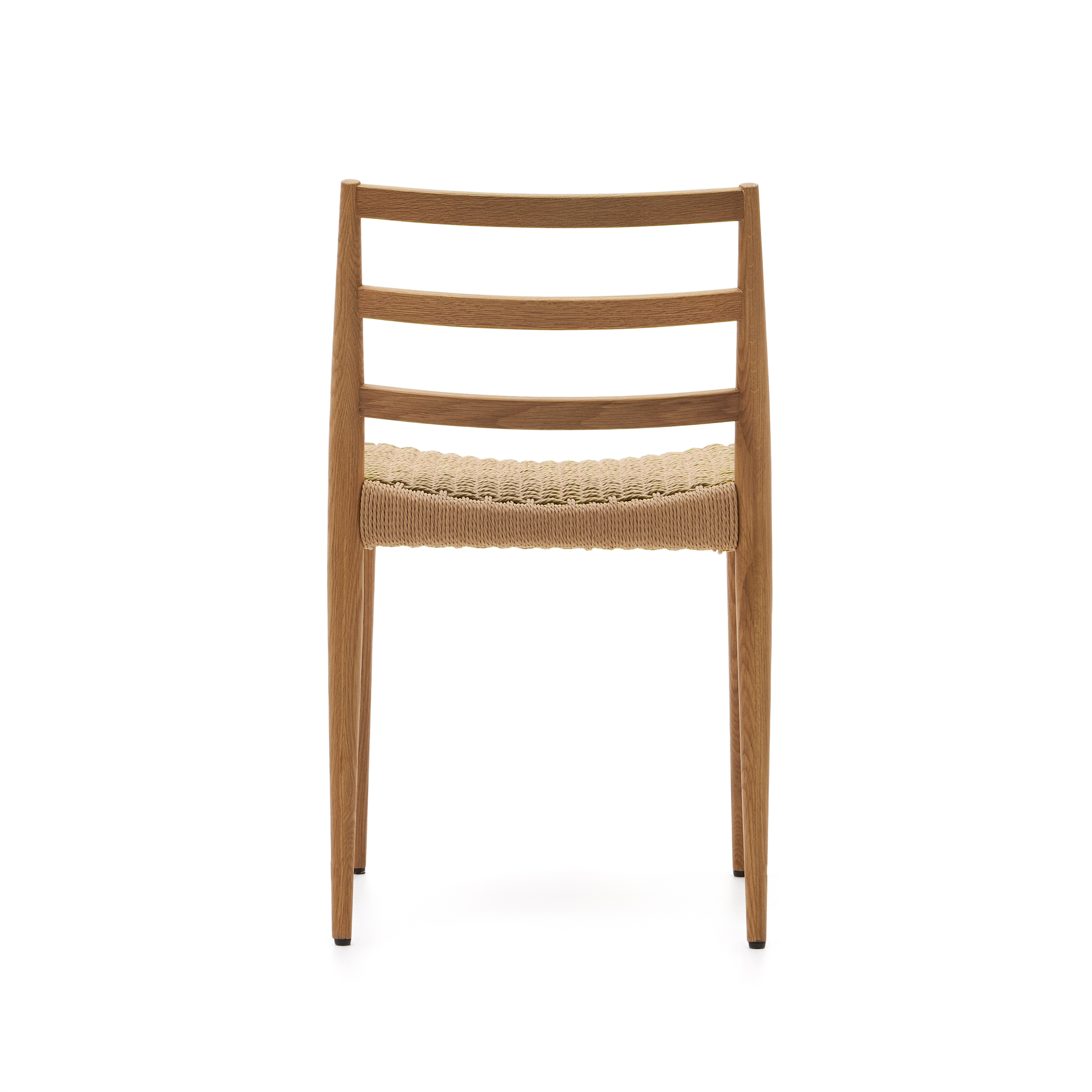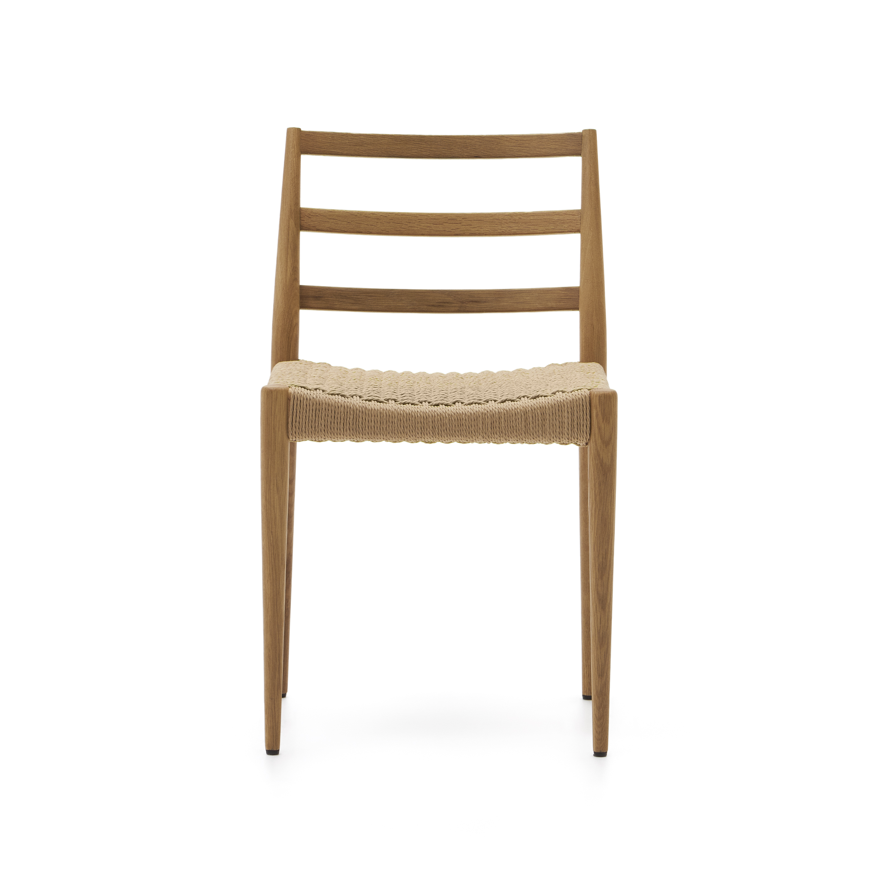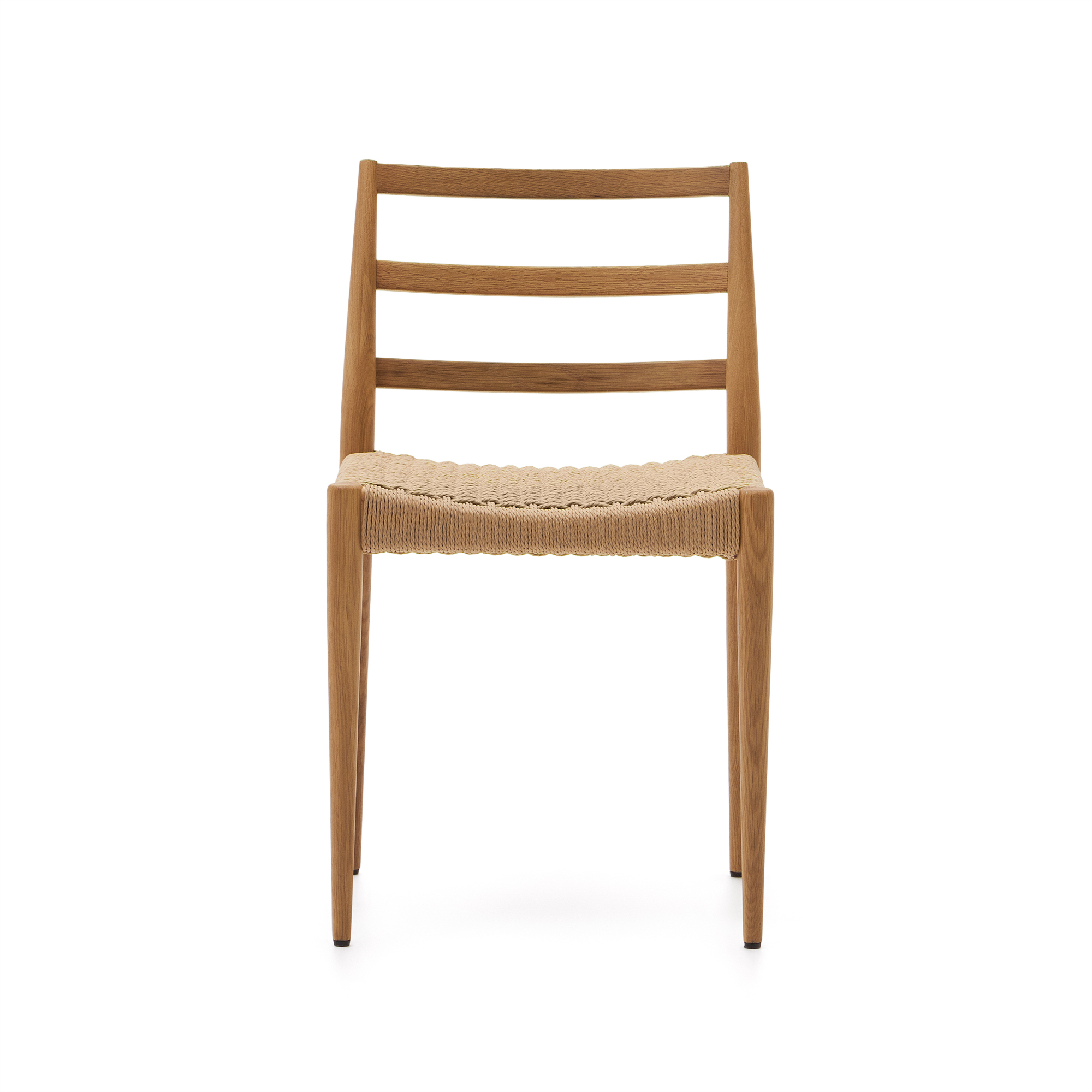 Analy-Stuhl aus massiver Eiche FSC 100 % mit natürlichem Finish und Sitzfläche aus FSC 100 % Seil.