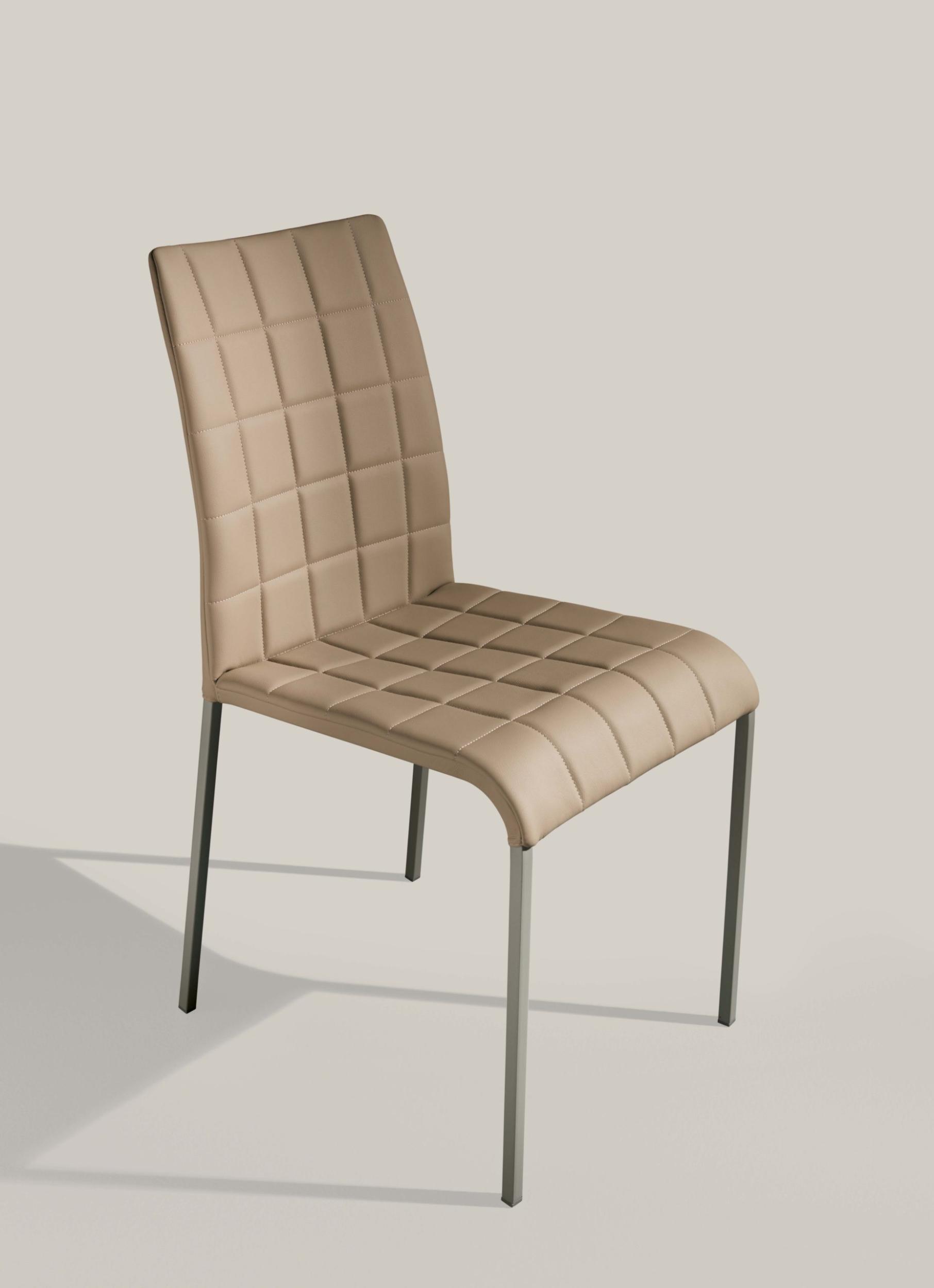 Kaufen Sie jetzt Ihren mit Öko-Leder bezogenen Stuhl mit lackiertem Stahlgestell.