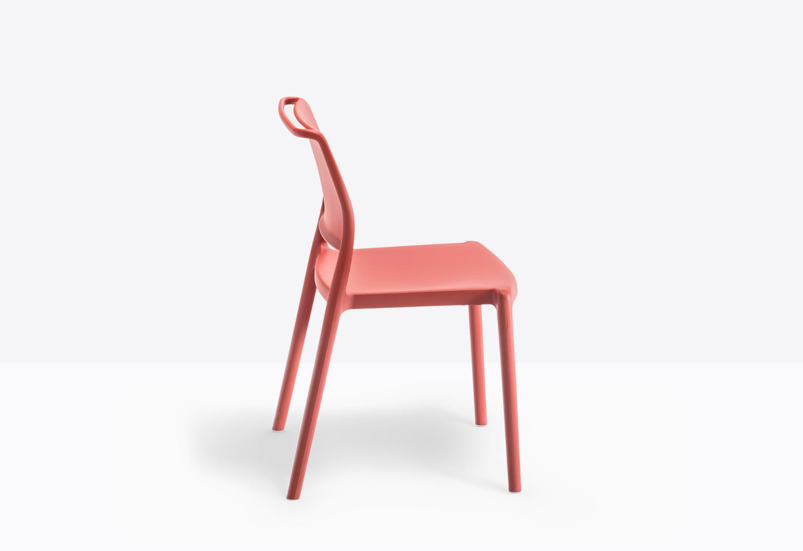 Polypropylen Stuhl mit Glasfaser beladen, geeignet für drinnen und draußen. Die Struktur der Rückenlehne bildet oben einen großen Griff, der das Anheben und Bewegen erleichtert und ihr einen besonderen Charakter verleiht. Dank der sich verjüngenden Form der Beine wirkt es leicht und elegant, während es robust und nicht verformbar ist. Stapelbar.