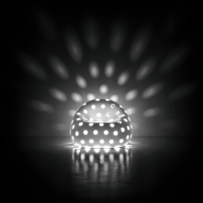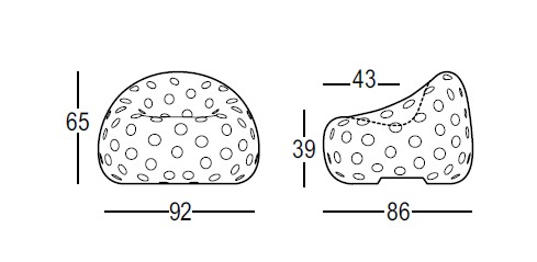 Sessel "Airball Armchair" aus der "Gumball" -Familie, von großer landschaftlicher Wirkung und geeignet für Umgebungen, in denen Lösungen mit einer starken Persönlichkeit benötigt werden. Die perforierte Oberfläche "leert" die Objekte und verleiht dieser Art von Möbeln eine beispiellose Leichtigkeit.
