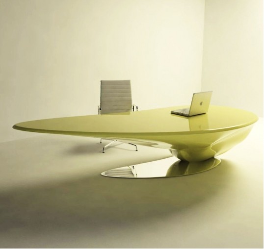 Dieser schöne Schreibtisch zeichnet sich durch Eleganz und Design sowie durch die Form und Innovation insbesondere der verwendeten Materialien aus.