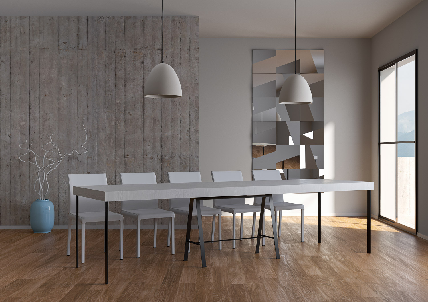 Der ausziehbare Konsolentisch Banco Premium ist vielseitig und robust und somit die perfekte Ergänzung für jeden Raum im Haus: Eingangsbereich, Küche, Esszimmer, Wohnzimmer oder Flur. Der ausziehbare Konsolentisch Banco Premium lässt sich leicht in einen großen Esstisch mit bis zu 300 cm Länge und Platz für 14 Personen verwandeln. Hergestellt aus melaminharzbeschichteten Platten und Eisenbeinen. Das Ausziehsystem mit Teleskopschienen aus Aluminium und die mitgelieferten Seitenstützen machen den Konsolentisch stabil und robust. Sobald der Konsolentisch geschlossen ist, müssen die Verlängerungen verstaut werden. Itamoby-Produkt, Made in Italy. Abmessungen: Geschlossener Konsolentisch: B 90 T 40 H 77 cm. Länge mit 1 Verlängerung: 92 cm. Länge mit 2 Verlängerungen: 144 cm. Länge mit 3 Verlängerungen: 196 cm. Länge mit 4 Verlängerungen: 248 cm. Länge mit 5 Verlängerungen: 300 cm.