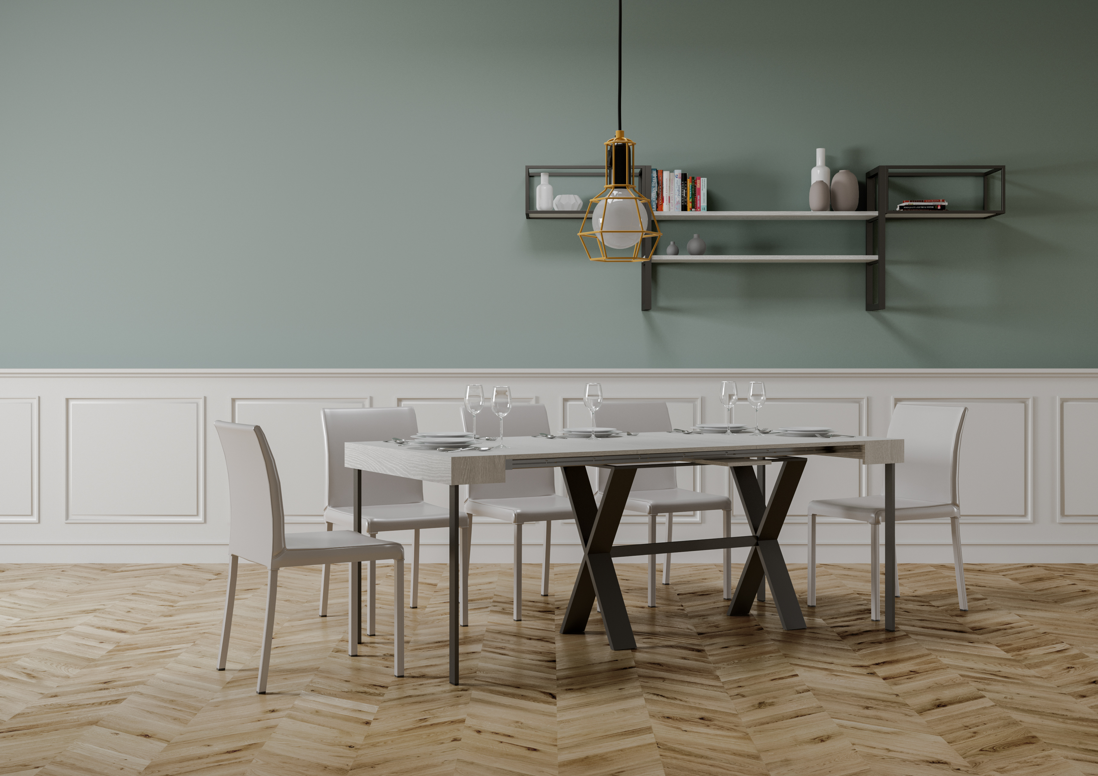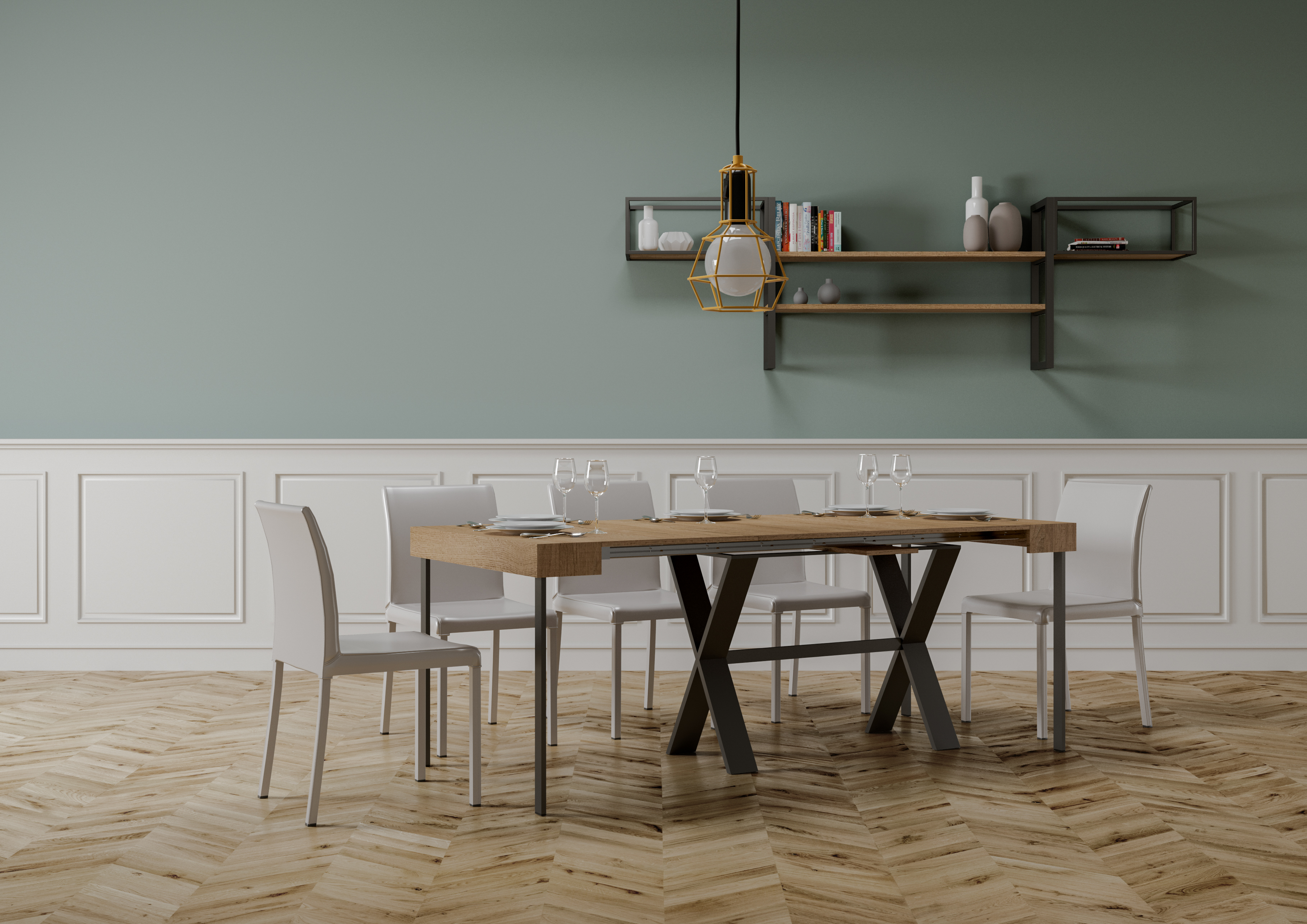 Der ausziehbare Konsolentisch Xenia Small ist vielseitig und robust und somit die perfekte Ergänzung für jeden Raum im Haus: Eingangsbereich, Küche, Esszimmer, Wohnzimmer oder Flur. Der ausziehbare Konsolentisch Xenia Small lässt sich leicht in einen großen Esstisch mit bis zu 196 cm Länge und Platz für 10 Personen verwandeln. Hergestellt aus melaminharzbeschichteten Platten und Eisenbeinen. Das Ausziehsystem mit Teleskopschienen aus Aluminium und die mitgelieferten Seitenstützen machen den Konsolentisch stabil und robust. Sobald der Konsolentisch geschlossen ist, müssen die Verlängerungen verstaut werden. Itamoby-Produkt, Made in Italy. Abmessungen: Geschlossener Konsolentisch: B 90 T 40 H 77 cm. Länge mit 1 Verlängerung: 92 cm. Länge mit 2 Verlängerungen: 144 cm. Länge mit 3 Verlängerungen: 196 cm.