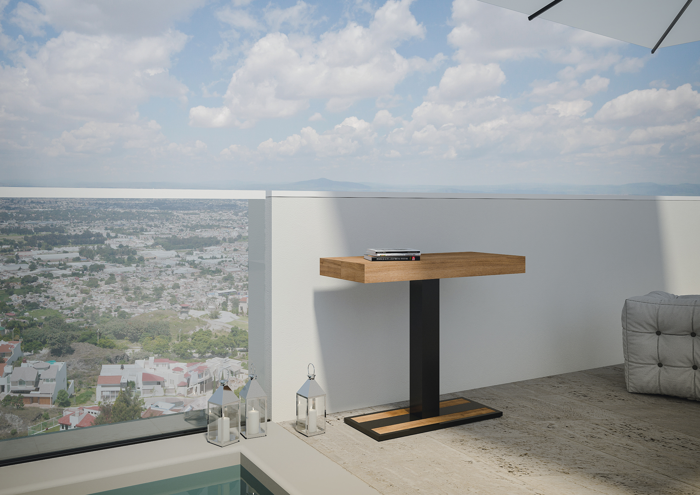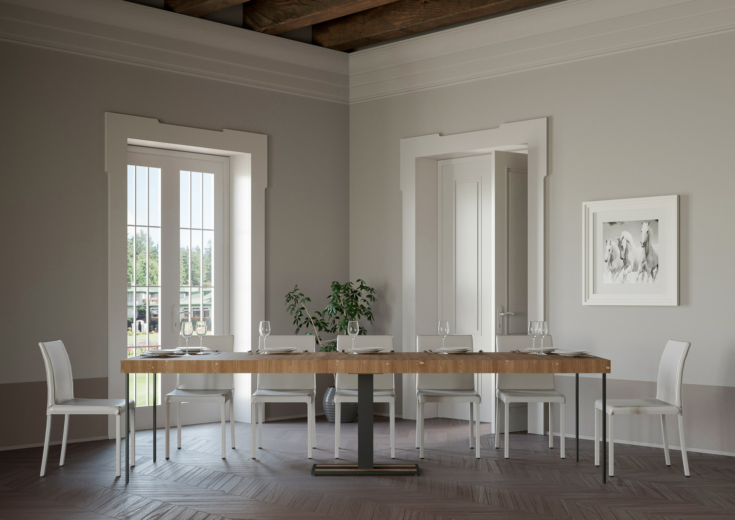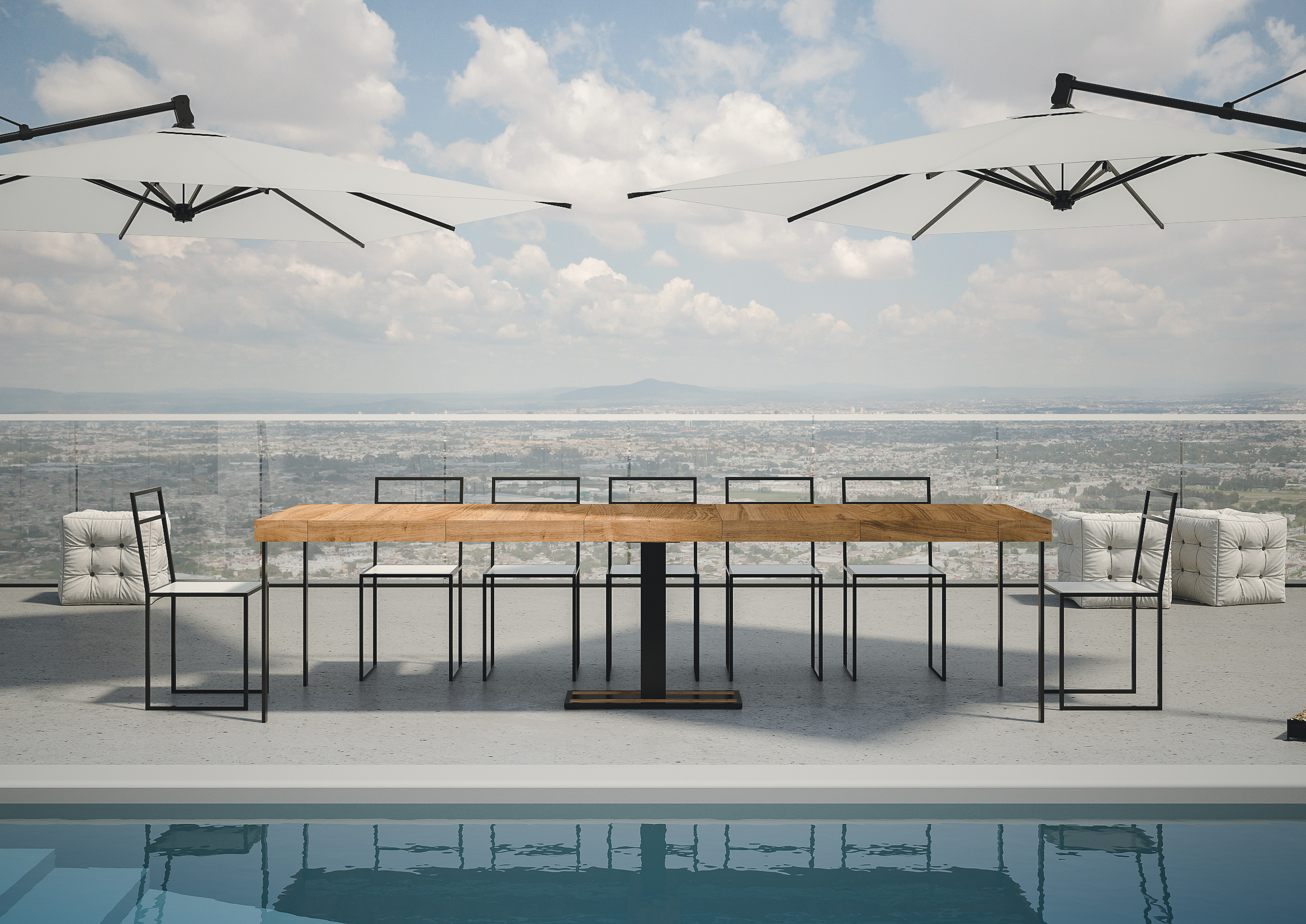 | Maße | L.90 T.40 H.77 cm (ausziehbar bis 300 cm) |