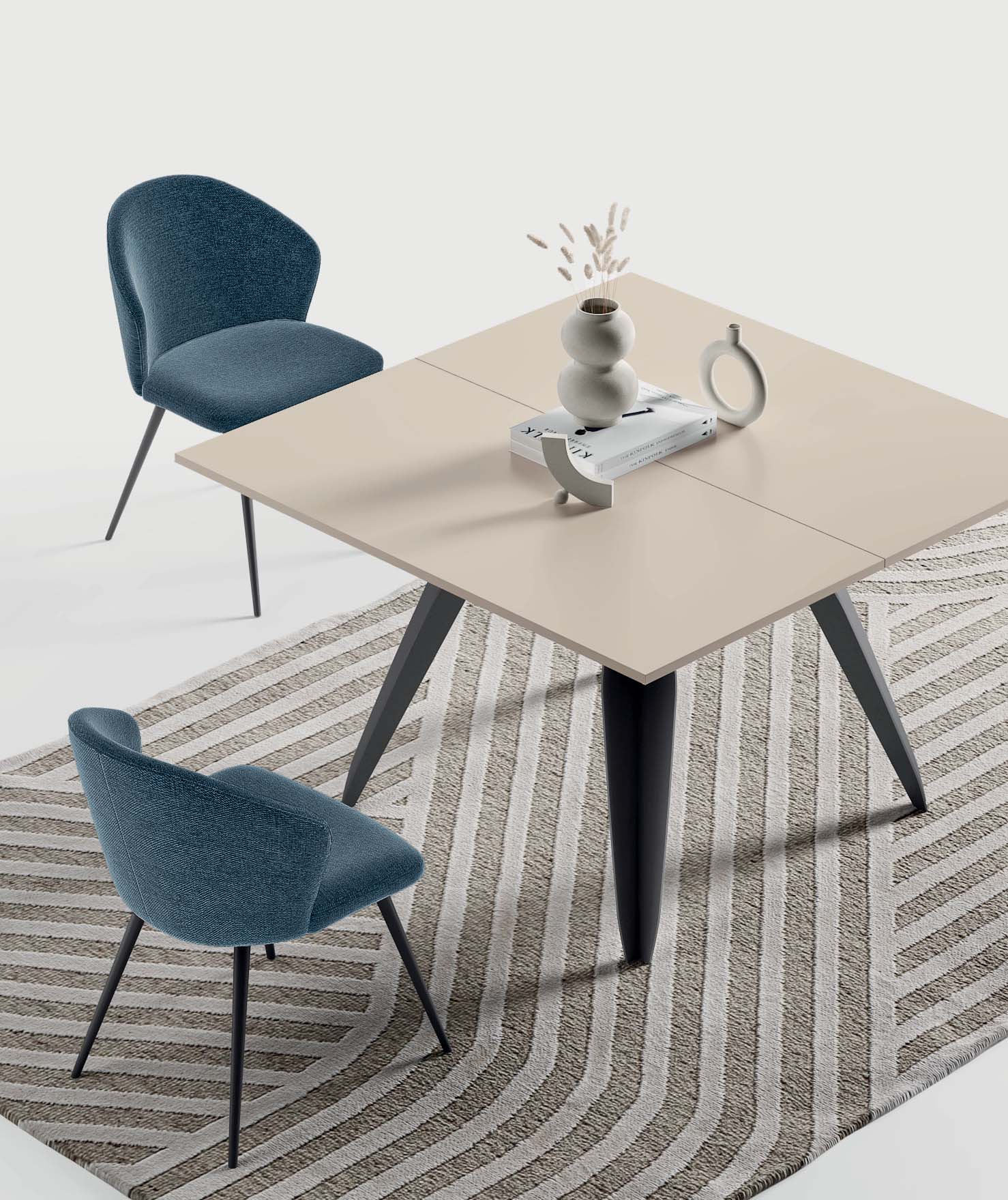 Entdecken Sie den ausziehbaren HPL-Tisch Nebula , ein elegantes Möbelstück, das modernes Design und praktische Funktionalität vereint.