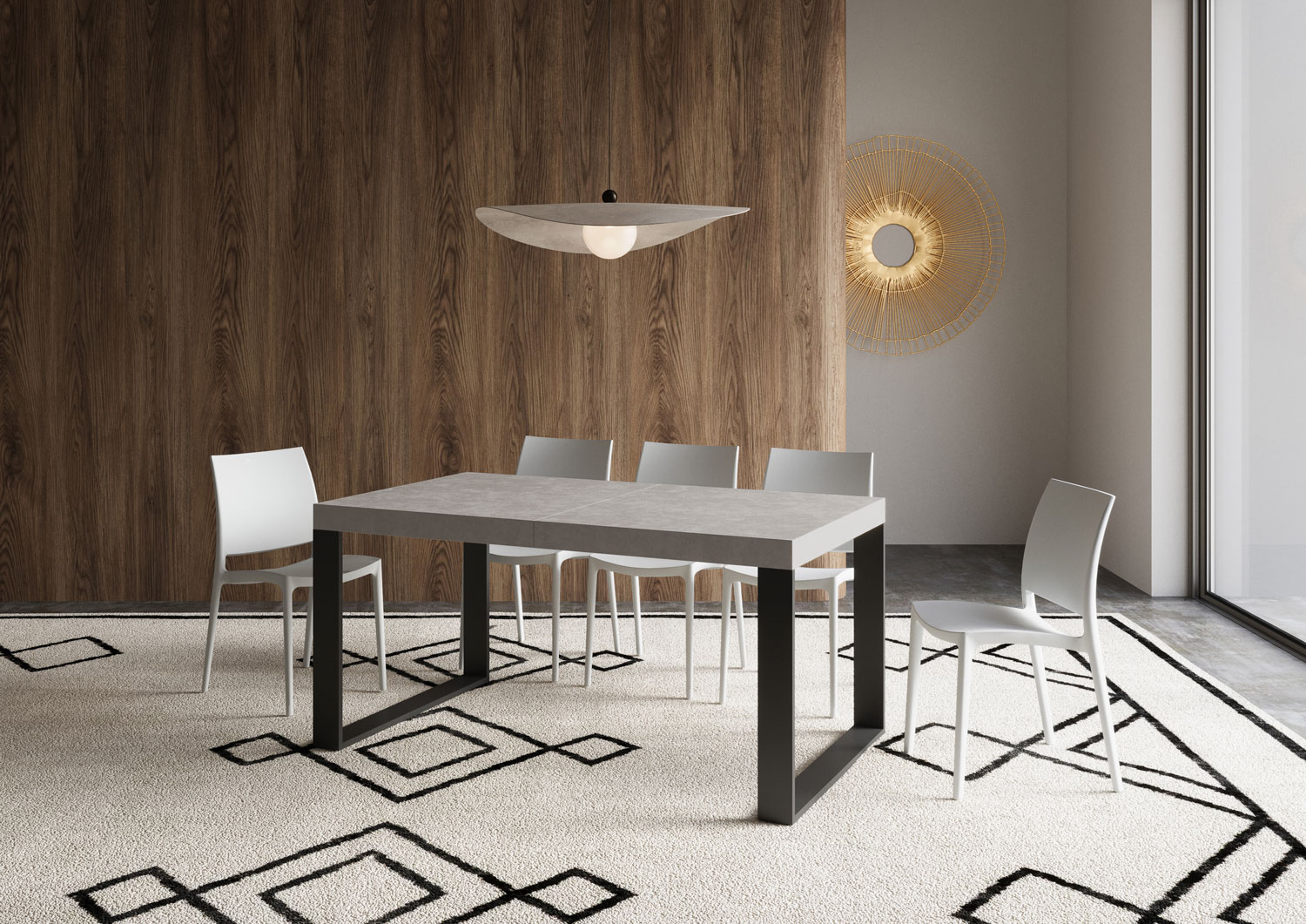 Ausziehtisch Tecno 160, aus schlichtem und essentiellem Design, fügt sich perfekt in jeden Einrichtungskontext ein und ist die ideale Lösung sowohl für die Küche als auch für das Wohnzimmer, wo Sie Ihre Gäste immer stilvoll empfangen können.