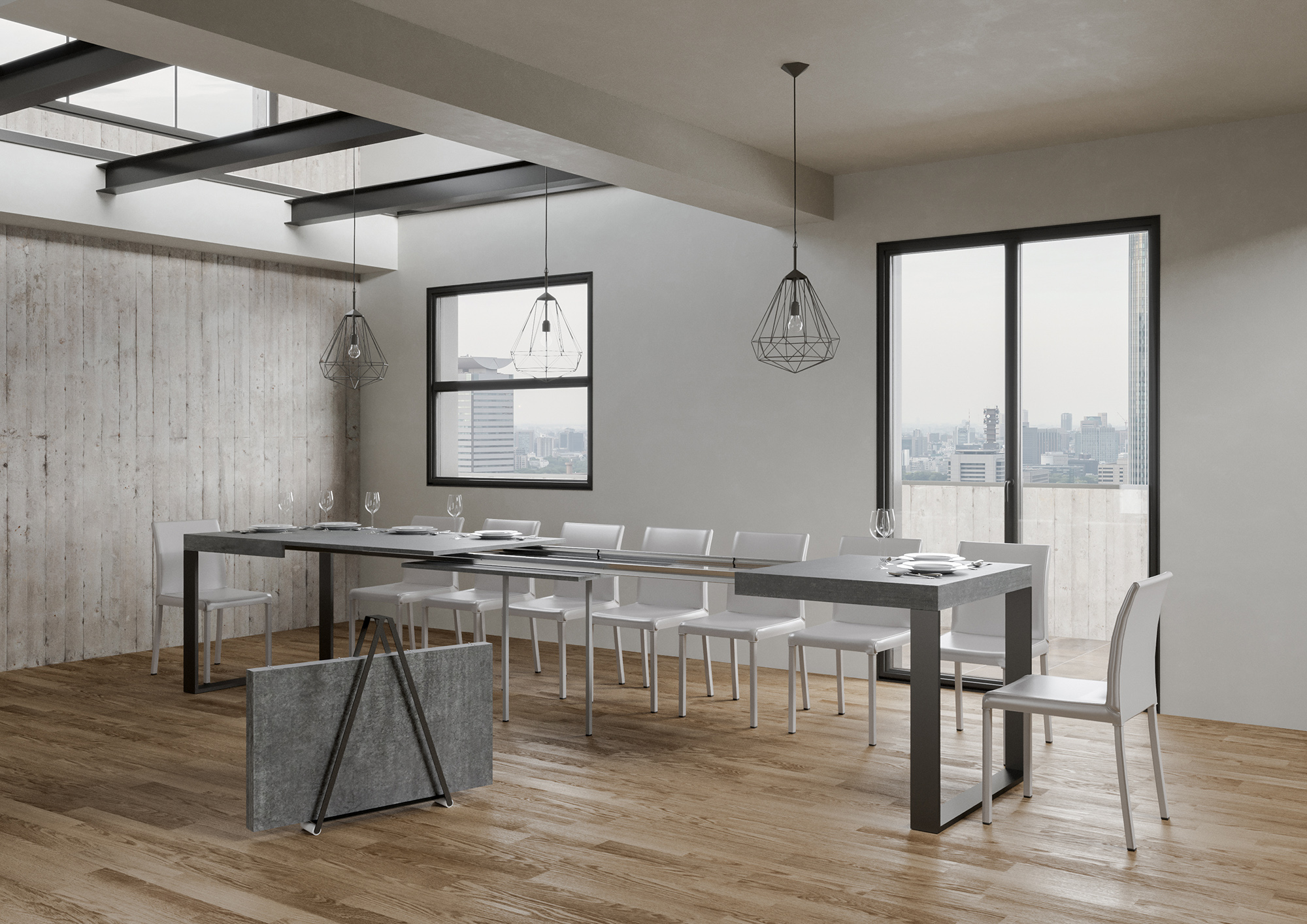 Der Ausziehtisch Tecno lässt sich schrittweise bis 440 cm ausziehen, mit Platz für bis 18 Personen.