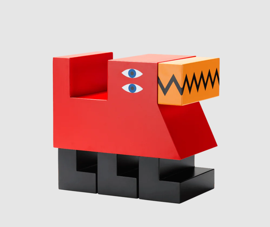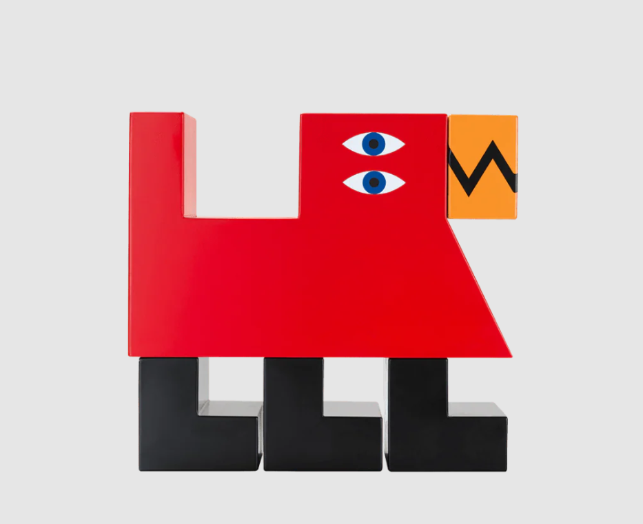 Aus lackiertem Holz gefertigt, vereint es Funktionalität und skulpturale Präsenz.