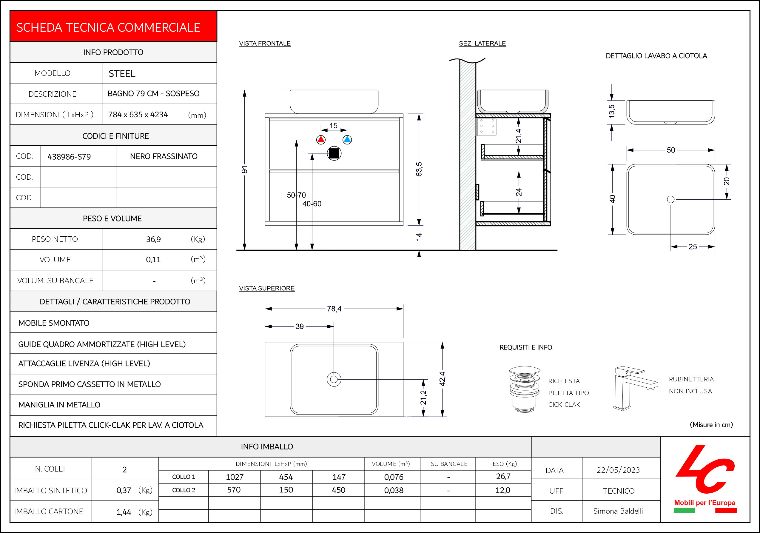 faq Buongiorno, Avrei bisogno della scheda tecnica del prodotto per capire com'è fatta la parte posteriore (per capire la posizione del sifone e tubi vari). Grazie molte.