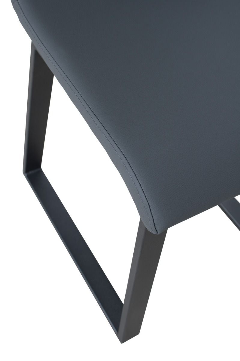 Baffy-Stuhl, ein bequemer Stuhl mit Kufengestell ohne Armlehnen, mit anthrazitfarben lackierten Metallbeinen und einer Holzsitzfläche, die mit leicht gepolstertem Kunstleder bezogen ist.
