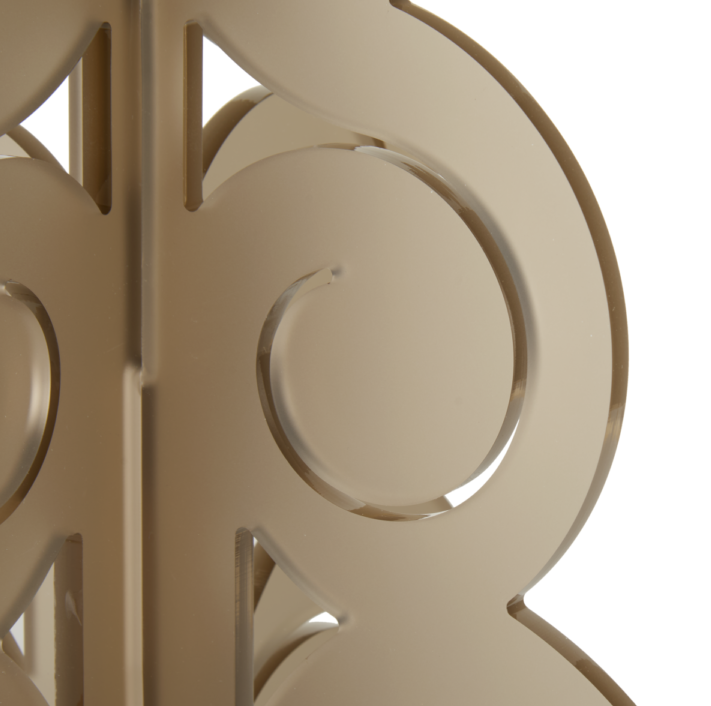 Die Transparenz und die Satinoberfläche betonen die wesentlichen Linien und machen es perfekt für moderne Umgebungen, sowohl im privaten als auch im professionellen Bereich.