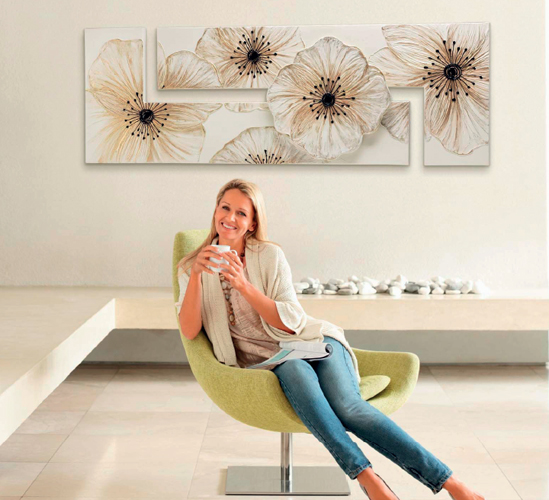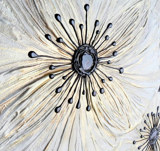 DESIGNFELDER cm 197x67 IVORY-Variante Strukturiertes Blumenmuster auf Doppelelle-Struktur mit aufgesetztem Mittelelement. Handgemachte Dekoration mit Acrylfarben, Wachsfarben und Harzen.