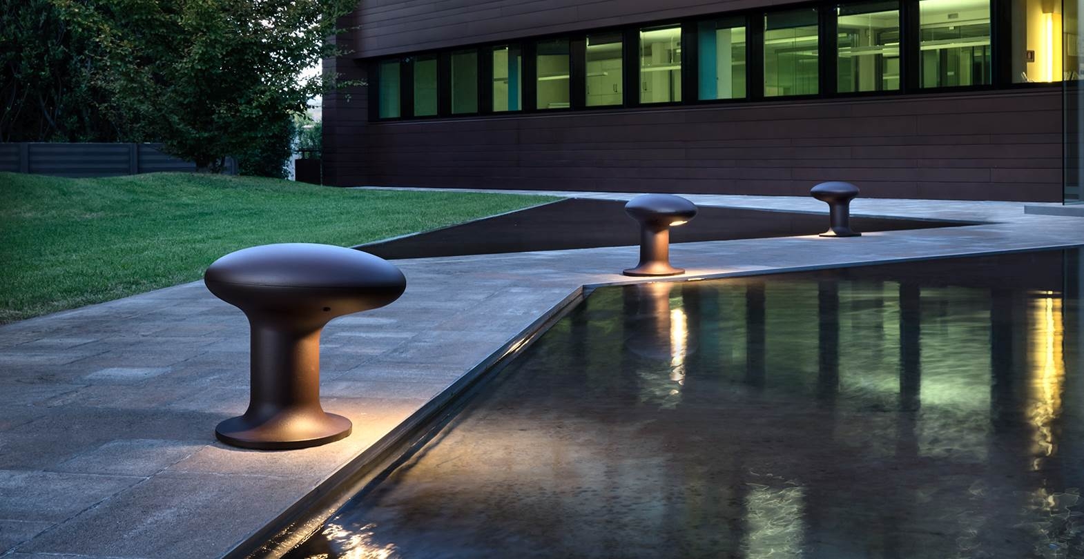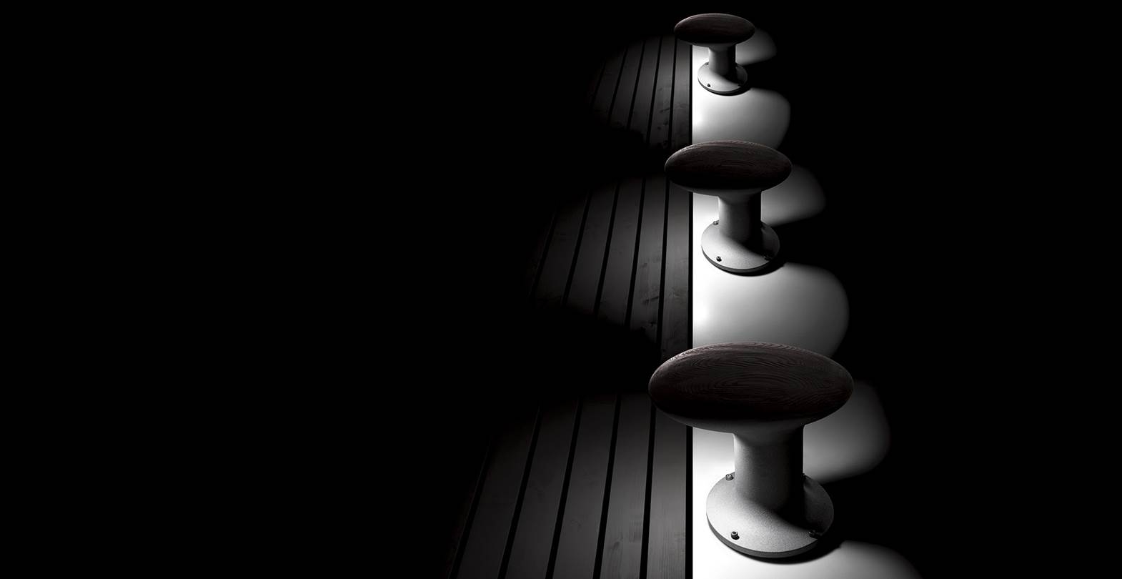 Eine Außenlampe, die ein traditionelles und ikonisches Objekt in einem zeitgemäßen und innovativen Schlüssel neu interpretiert: dem nautischen Poller.