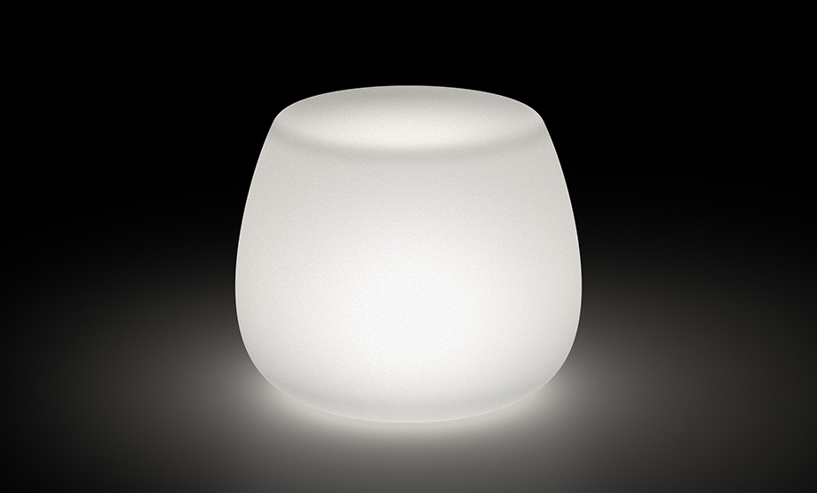 Der niedrige Hocker Boom Light wurde als querliegendes Objekt konzipiert, das sowohl als kleiner Hocker als auch als Beistelltisch neben dem Sessel verwendet werden kann.
