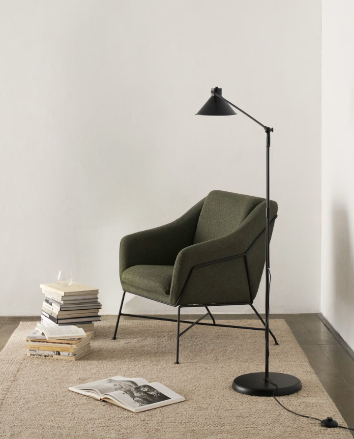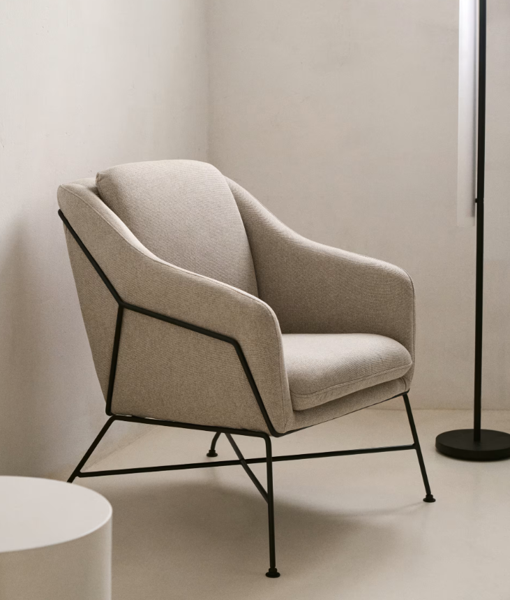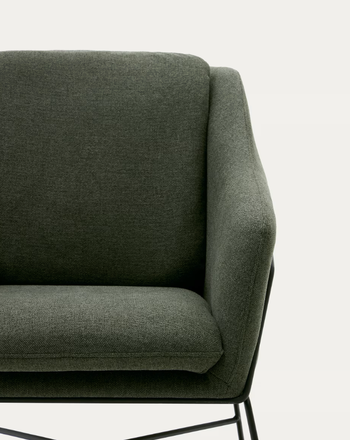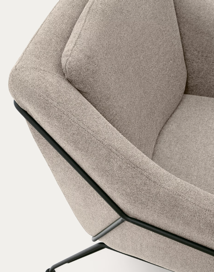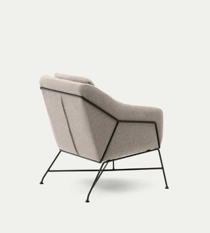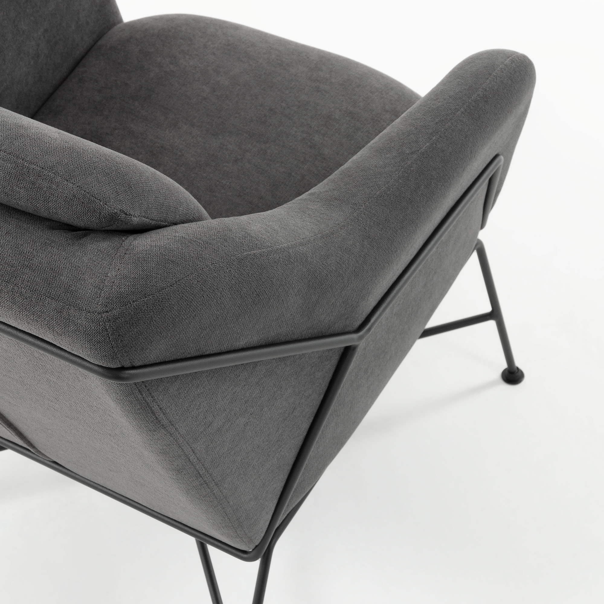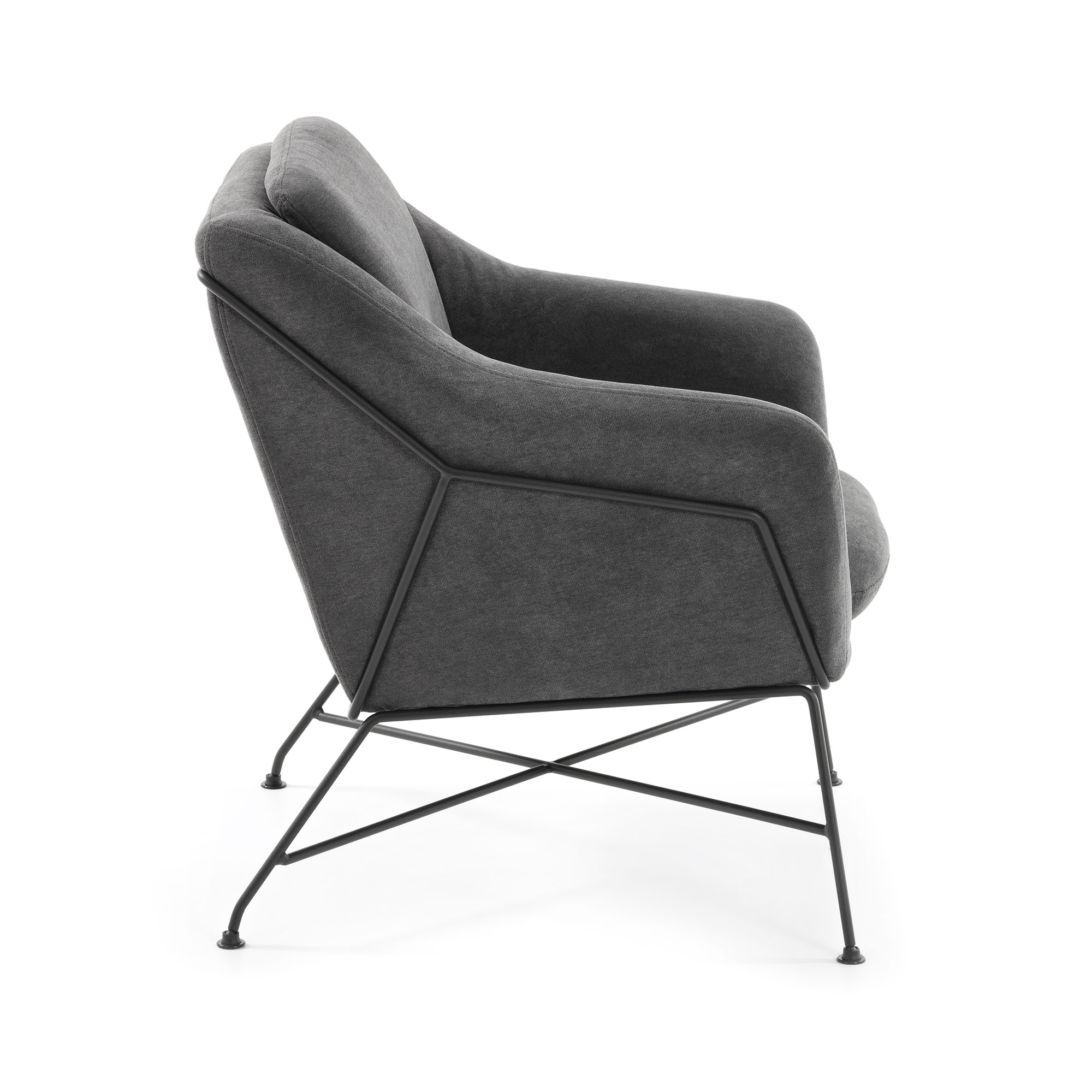 Der mit Graphitstoff bezogene Brida-Sessel folgt dem Trend der sichtbaren Struktur, die typisch für zeitgenössisches Design ist, zusätzlich zu seinen asymmetrischen Volumen. Frei von Verzierungen hat es ein Design, das auf Einfachheit und Funktionalität basiert. Wählen Sie Designs!