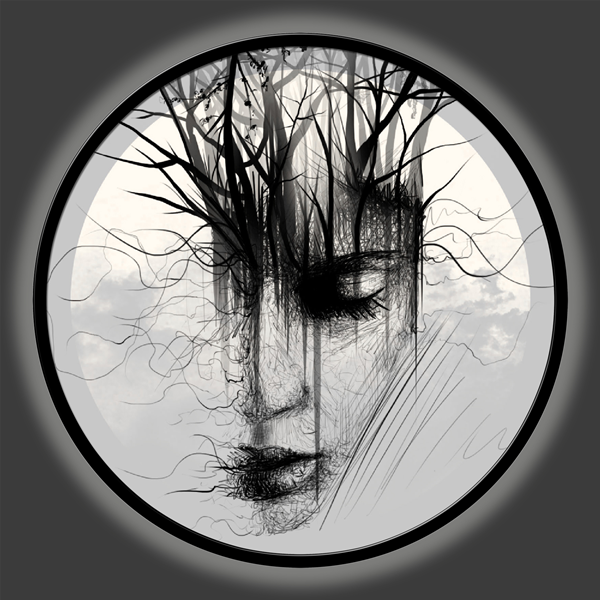 Runde Holzfaserplatte, bedeckt mit hochauflösend bedruckter Polyester-Leinwand und mit matt lackiertem Metallrahmen.