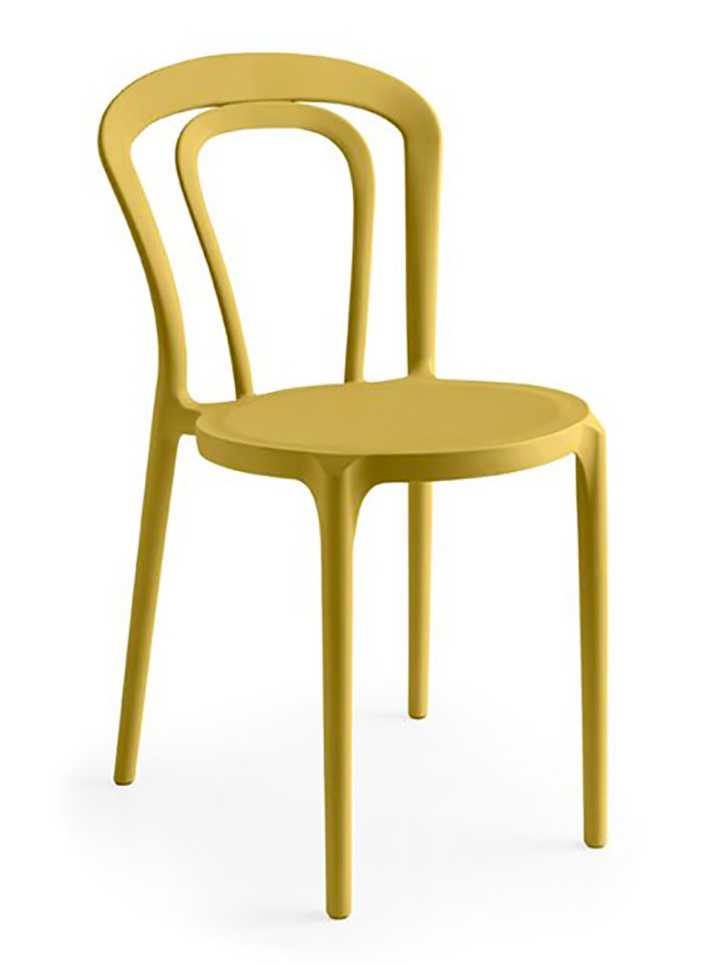 Der Stuhl zeichnet sich durch eine bequeme Rückenlehne aus, hat eine Struktur aus Polypropylen und imitiert den Stil der ikonischen Thonet-Stühle.