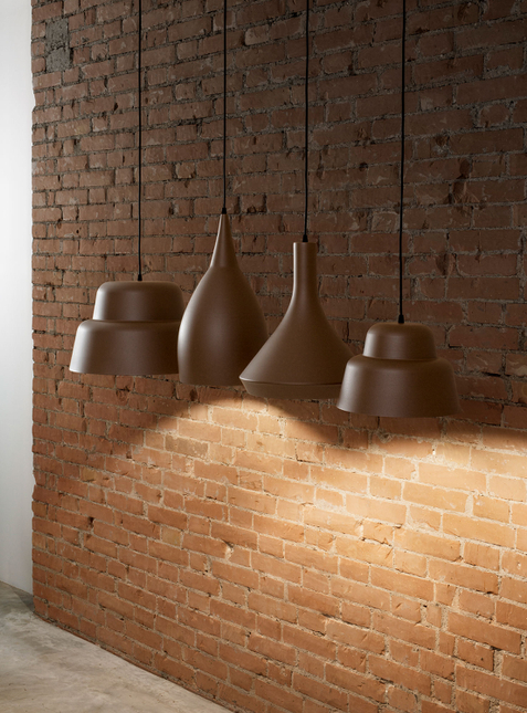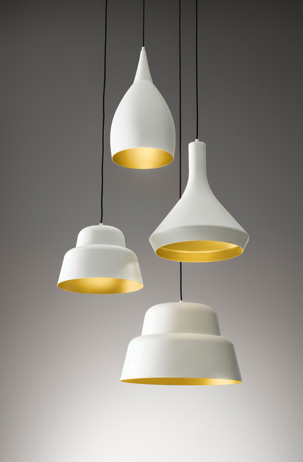 Serie von Hängelampen mit weichen und vielseitigen Formen, hergestellt aus emailliertem Aluminium.