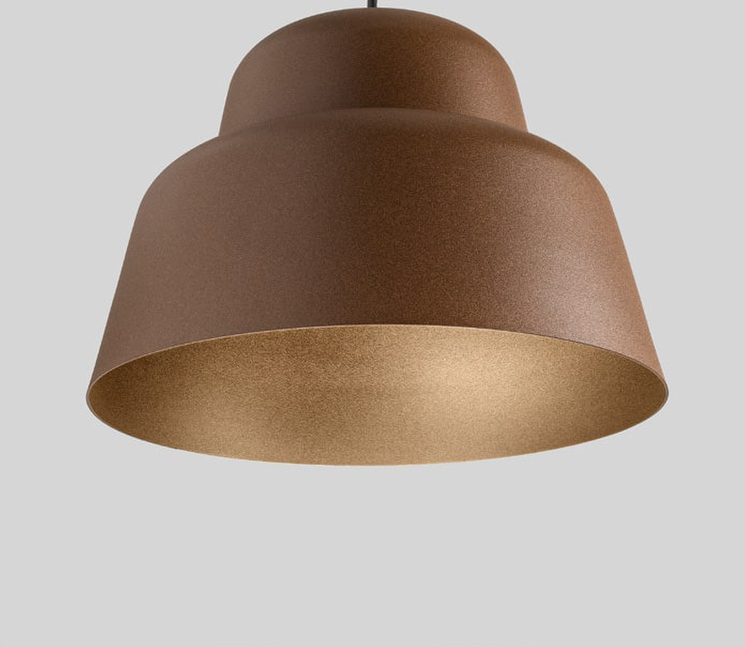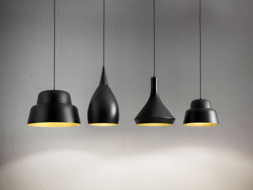 Serie von Hängelampen mit weichen und vielseitigen Formen, hergestellt aus emailliertem Aluminium.