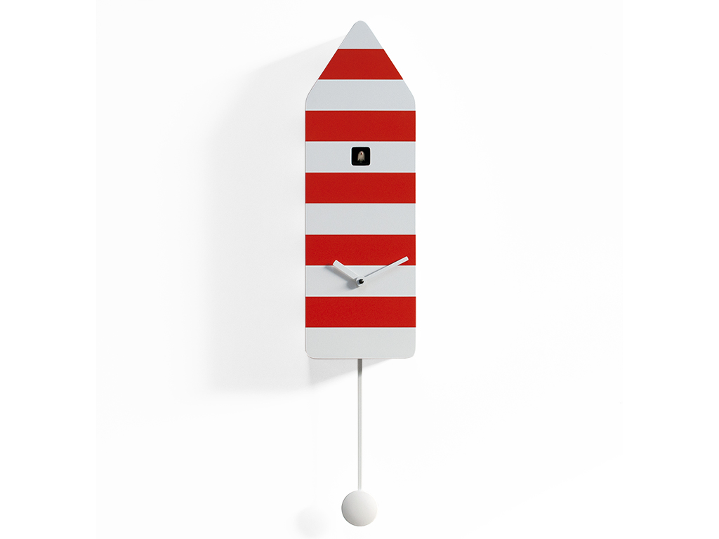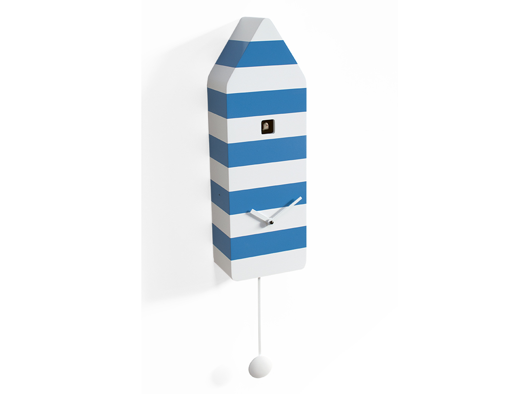 Capri ist der Kuckuck, der von einem der begehrtesten Reiseziele Italiens inspiriert wurde, der Insel des Golfs von Neapel, einem Ort des Urlaubs und der Entspannung. Der Kuckuck mit hellen Tönen und klaren Linien erinnert an die Kabinen der Badeanstalten, aber mit den typischen Farben der Signalleuchten der Inseln. Ein einfaches Objekt, das viele Emotionen und Erinnerungen enthält. Capri ist Teil der Dauerausstellung des Deutschen Uhrenmuseums, des historischen Deutschen Uhrenmuseums, das für die große Sammlung von Uhren und Kuckucken aus aller Welt wichtig ist. Capri besteht aus Holz und ist mit einem batteriebetriebenen Quarzwerk mit einem Sensor ausgestattet, der den Klingelton bei Lichteinfall automatisch ausschließt.