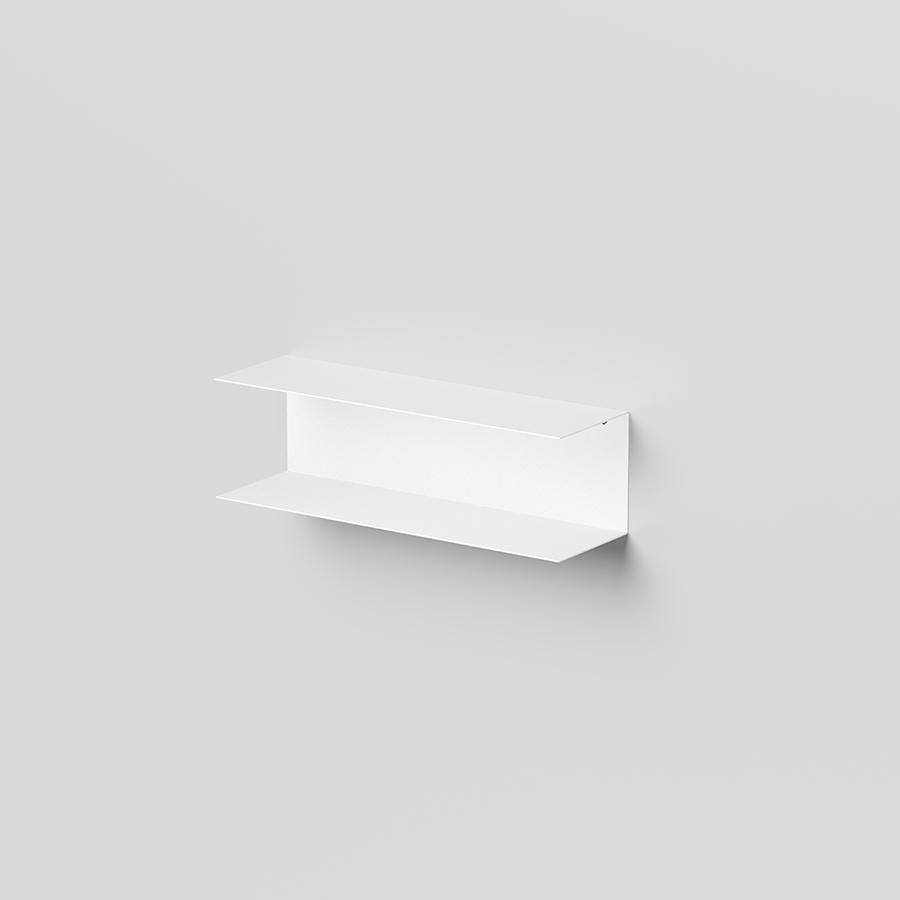 Cargo-Wandregal mit kompakten Abmessungen, hergestellt aus sablélackiertem Stahlblech.