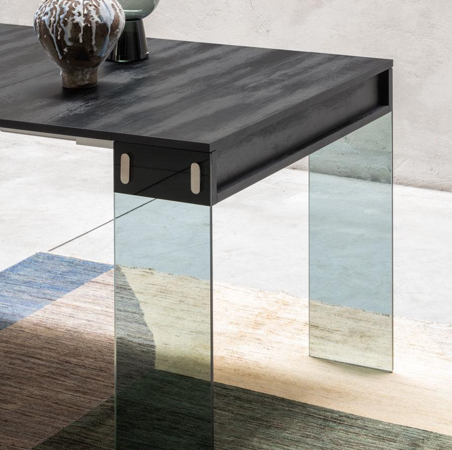 Die Seiten bestehen aus 10 mm starkem gehärtetem Glas für eine moderne und leichte Note.