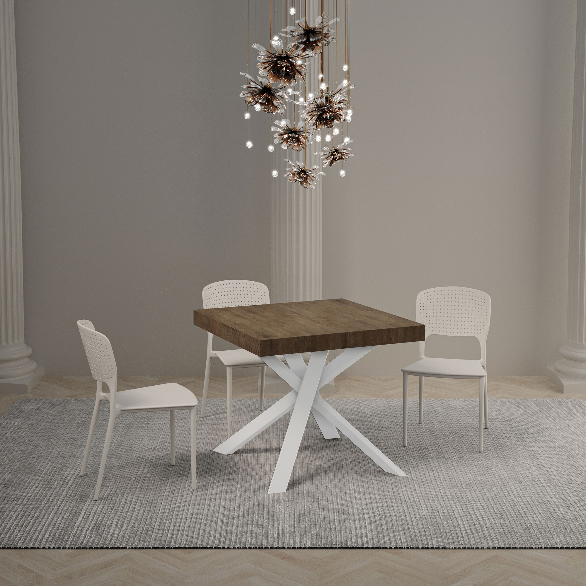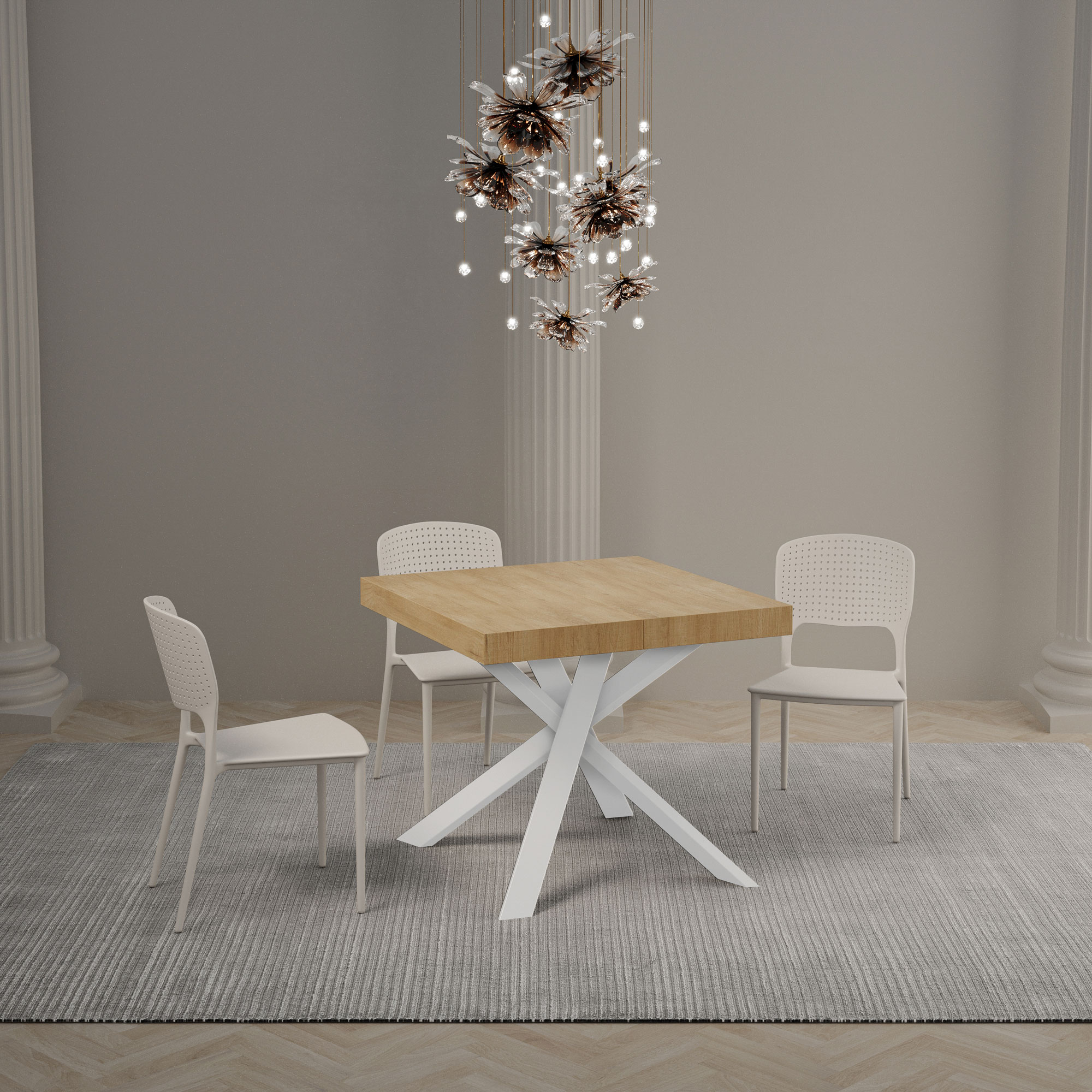 | Maße | B.90 T.90 H.76 cm (ausziehbar bis 194 cm) |