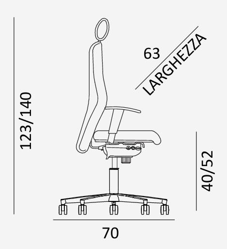 Die Armlehnen sind höhenverstellbar und verfügen über einen Einsatz aus verchromtem Stahl, der Ästhetik und Robustheit vereint.