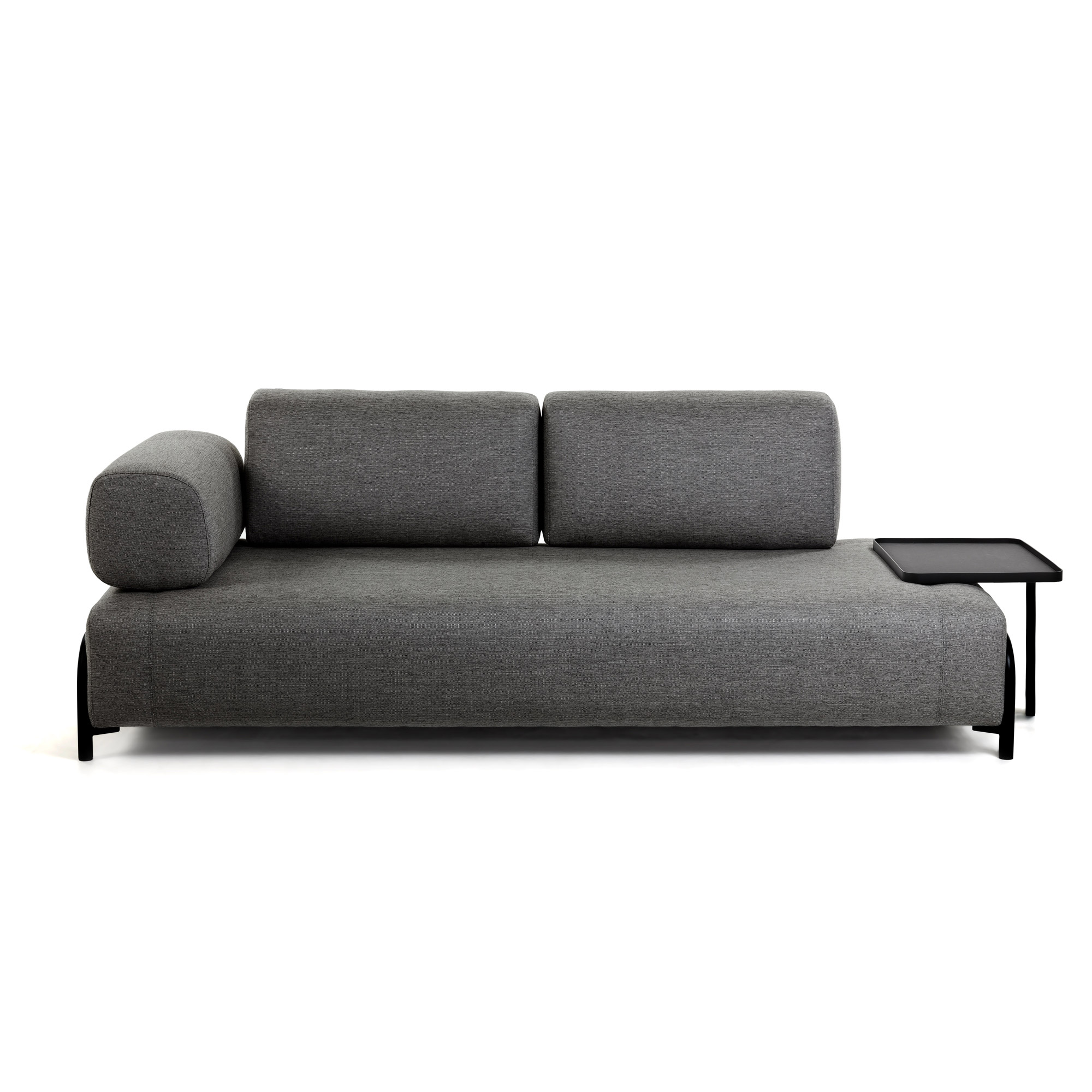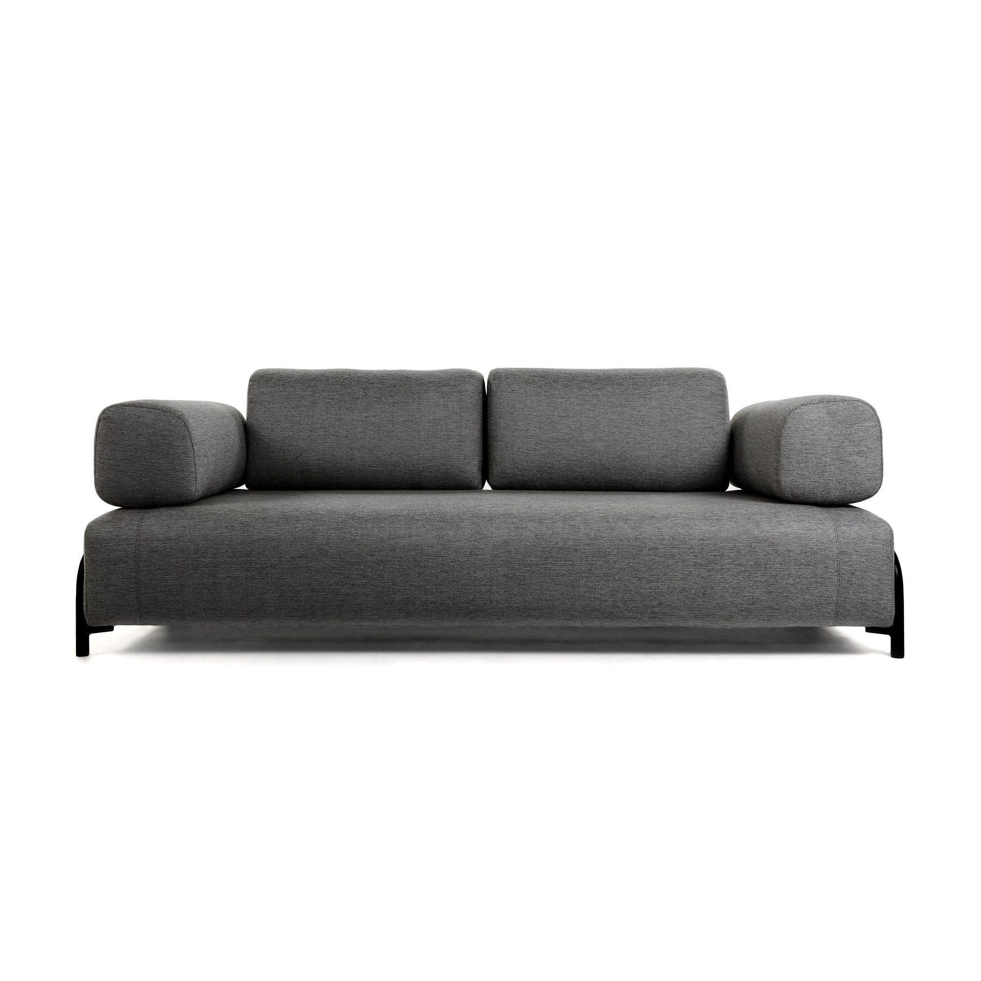 Das Compo-Sofa wurde von Òscar Doll, einem der Designer des Kave Home-Teams, entworfen. Aufgrund seiner essentiellen und grundlegenden Form ist es ein zeitloser Artikel, mit dem Sie dank seines Zubehörs alle möglichen Kombinationen genießen können. Das Gestell aus Kiefernholz ist mit Schaumstoff überzogen und dunkelgrau gepolstert. Ein vielseitiges Sofa, das seine Bedeutung in all seinen vielen Formen behält. Entspannen Sie sich einfach und genießen Sie es.