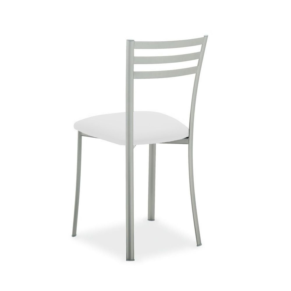 Die Struktur des Stuhls ist in verchromtem Metall, satiniertem Lack oder mattem optischem Weißlack erhältlich.