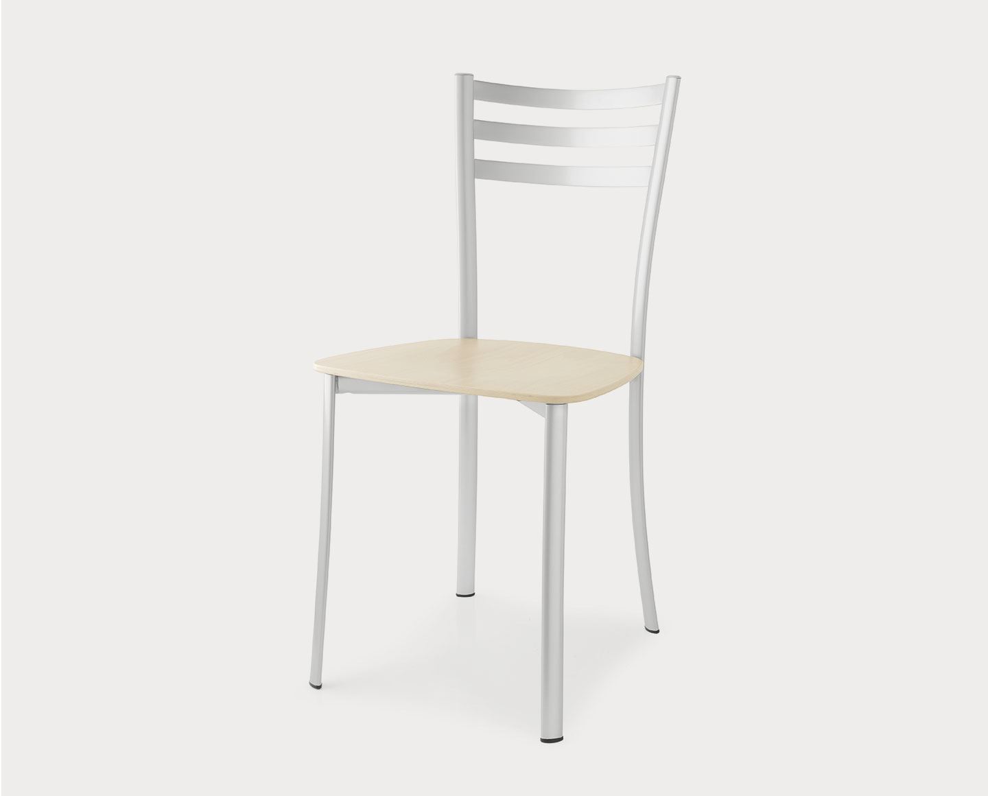 Dieser moderne Stuhl ist auch mit Sitz aus Buchensperrholz in den folgenden Varianten erhältlich: gebleicht, Wenge, Kirsche oder matt optisch weiß oder matt taubengrau lackiert.
