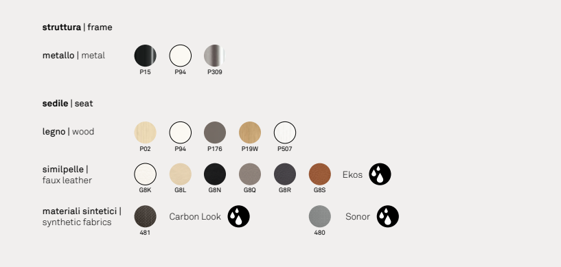 Der Sitz ist auch in mattschwarzem, mattem optischem Weiß, mattem Taupe, mattrotem oder mattgrauem Polypropylen erhältlich.