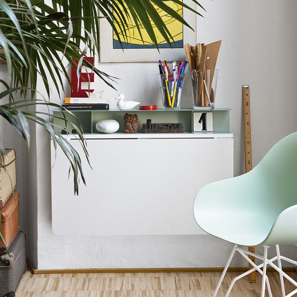 Dieser Klapptisch ist die ideale Lösung für Menschen mit begrenztem Platzangebot. Der Tisch ist so konzipiert, dass er Praktikabilität und Funktionalität bietet, ohne Kompromisse beim Stil einzugehen. Er kann problemlos an der Wand befestigt werden. Bei Nichtgebrauch lässt er sich zusammenfalten und ist mit einer Tiefe von nur 14 cm äußerst kompakt. Nach dem Öffnen verwandelt er sich in einen praktischen Tisch mit einer maximalen Größe von 90 x 60 cm.