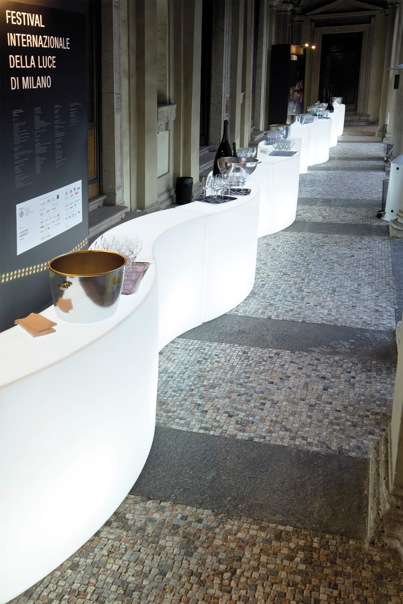 Snack Bar ist eine modulare und leuchtende Bartheke, die eine perfekte Kombination aus Form und Funktionalität schafft. Seine Schlichtheit und die Höhe seiner Auflagefläche machen ihn ideal für den Gastronomiebereich. Wie alle leuchtenden Bartheken, die SLIDE weltweit berühmt gemacht haben, kann Snack Bar in mehreren Modulen kombiniert werden, um lange Auflageflächen in großen Räumen zu schaffen. Die Snack Bar ist ideal für den Innen- und Außenbereich sowie für moderne und trendige Umgebungen. Sie besteht aus Polyethylen und kann mit Logos und Bildern individuell gestaltet werden. Damit ist sie ideal für Verträge und Veranstaltungen, die Eindruck machen möchten.