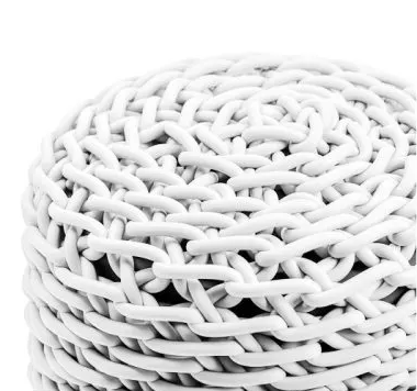 Diese Poufs sind aus gestricktem Gummifaden hergestellt.