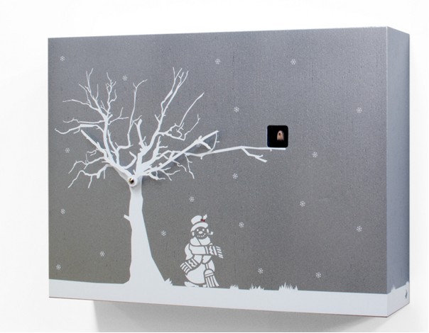 Einfach, zart, linear, aber von großer Wirkung, ein Gemälde mit wenigen Elementen, aber das fällt auf. Dies ist CùCùRùKù, ein Designobjekt, einer der Bestseller von Progetti, das von Riccardo Paolino und Matteo Fusi entworfen wurde und für seine Eleganz ohne Übermaß geschätzt wird. CùCùRùKù ist eine Hommage an die Natur, insbesondere an die Herbst- und Winterperiode, in der die Bäume ihre Blätter verlieren, das Holz zum Protagonisten wird und die ersten warmen und dann kalten Farben des Schnees die Oberhand gewinnen. Der Kuckuck ruht auf dem längsten Ast, wettergeschützt. Die Hände mit der ungenauen Form der Zweige können orange, weiß oder grün sein. Batterie Quarzwerk. Ein lichtempfindlicher Sensor stoppt den Klingelton automatisch, wenn kein Licht vorhanden ist.