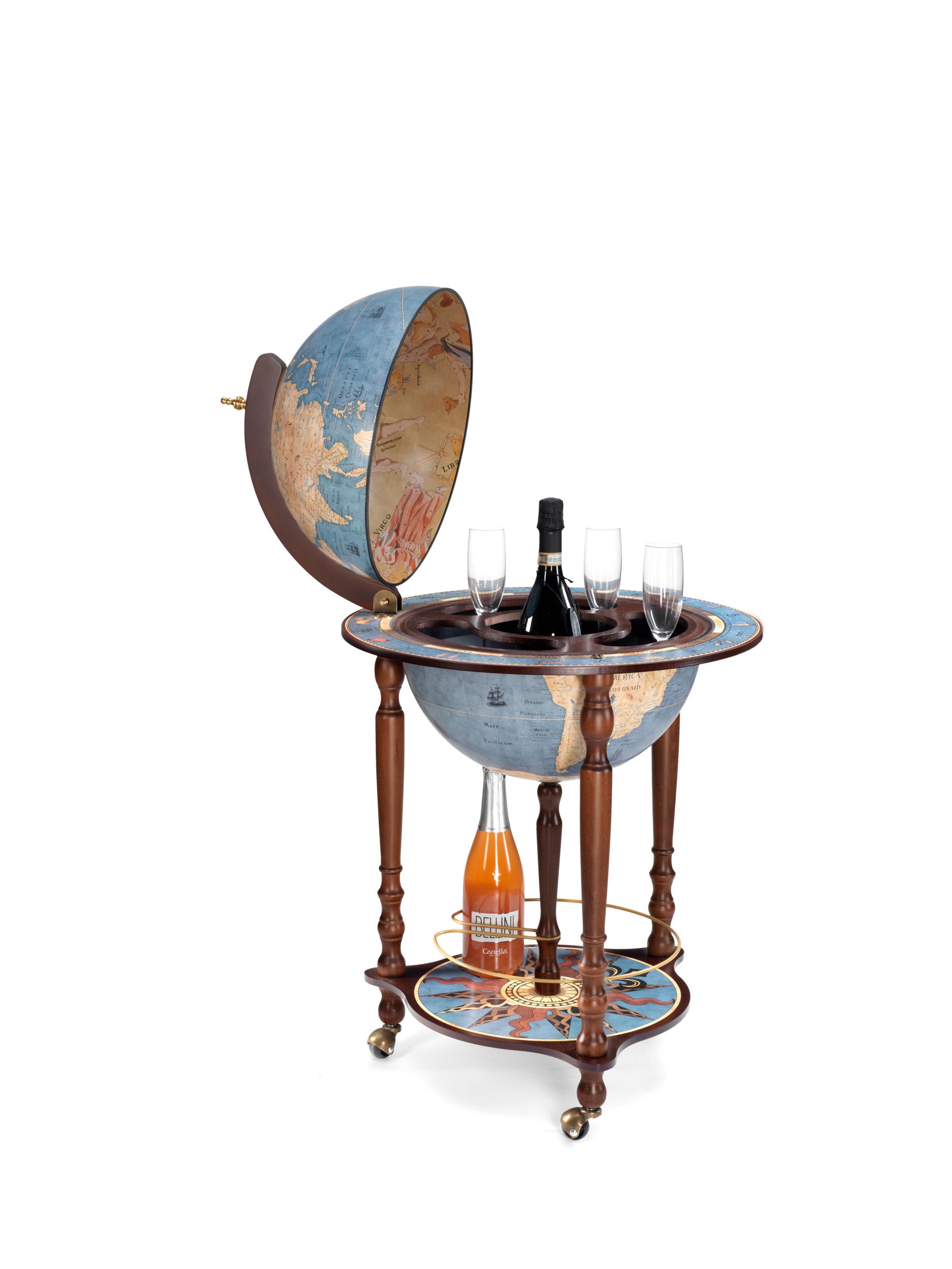 Der Da Vinci-Barglobus ist eine Nachbildung einer von unseren Kartographen handgezeichneten Karte aus dem 18. Jahrhundert. Er eignet sich ideal für jede Art von Umgebung und wird zum absoluten Protagonisten in jedem Raum. Der Sockel ist fein mit der Darstellung einer Windrose verziert, die perfekt mit der um den Äquator platzierten Tierkreisillustration harmoniert. Das Innere der nördlichen Hemisphäre zeigt dekorative Bilder der Himmelskonstellation .