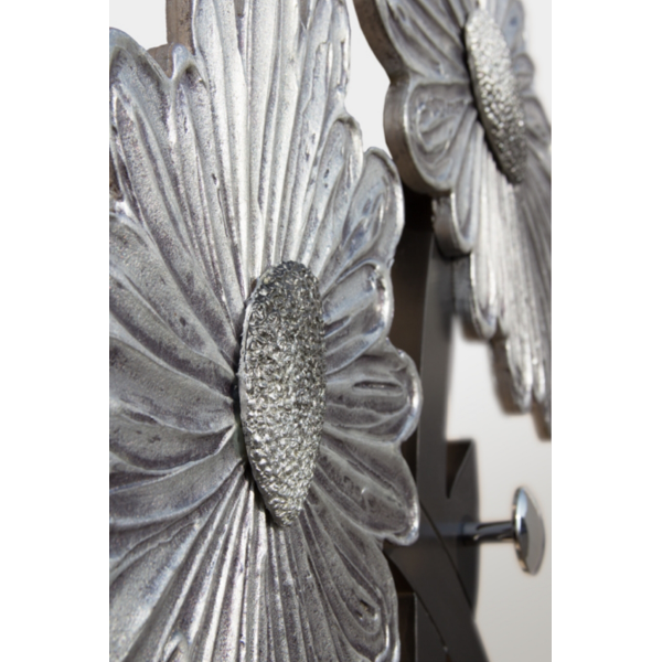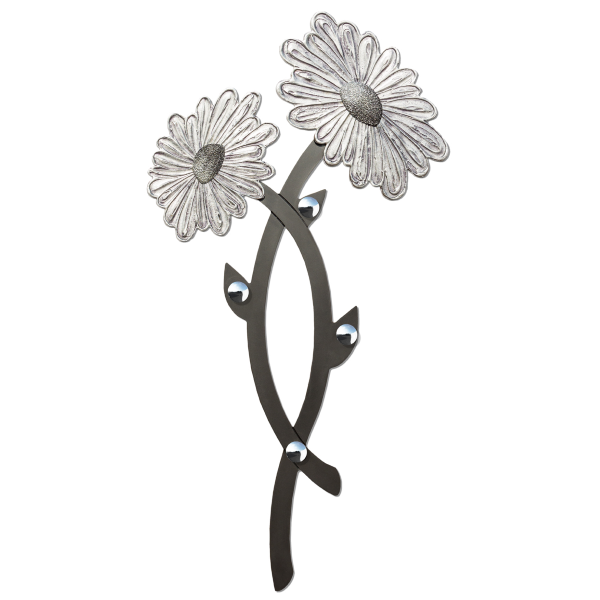 Geformter und anthrazitlackierter Kleiderbügel mit zwei handdekorierten Blattsilberelementen auf Reliefmaterial, vier verchromten Knöpfen.